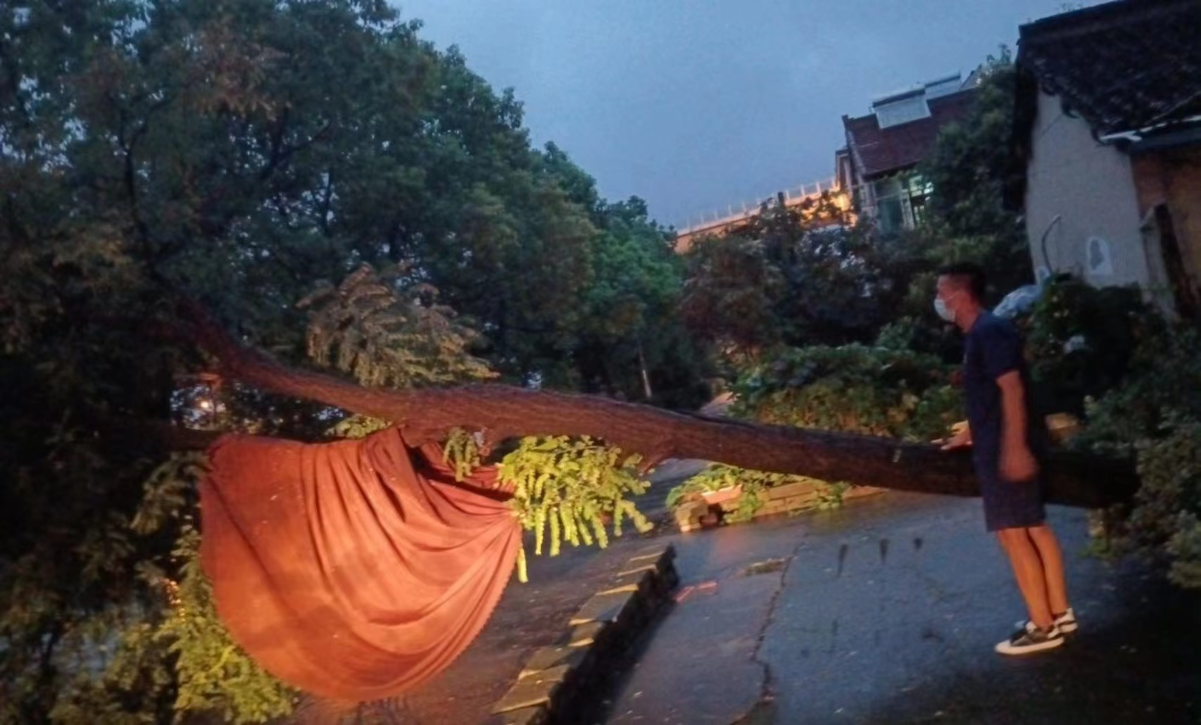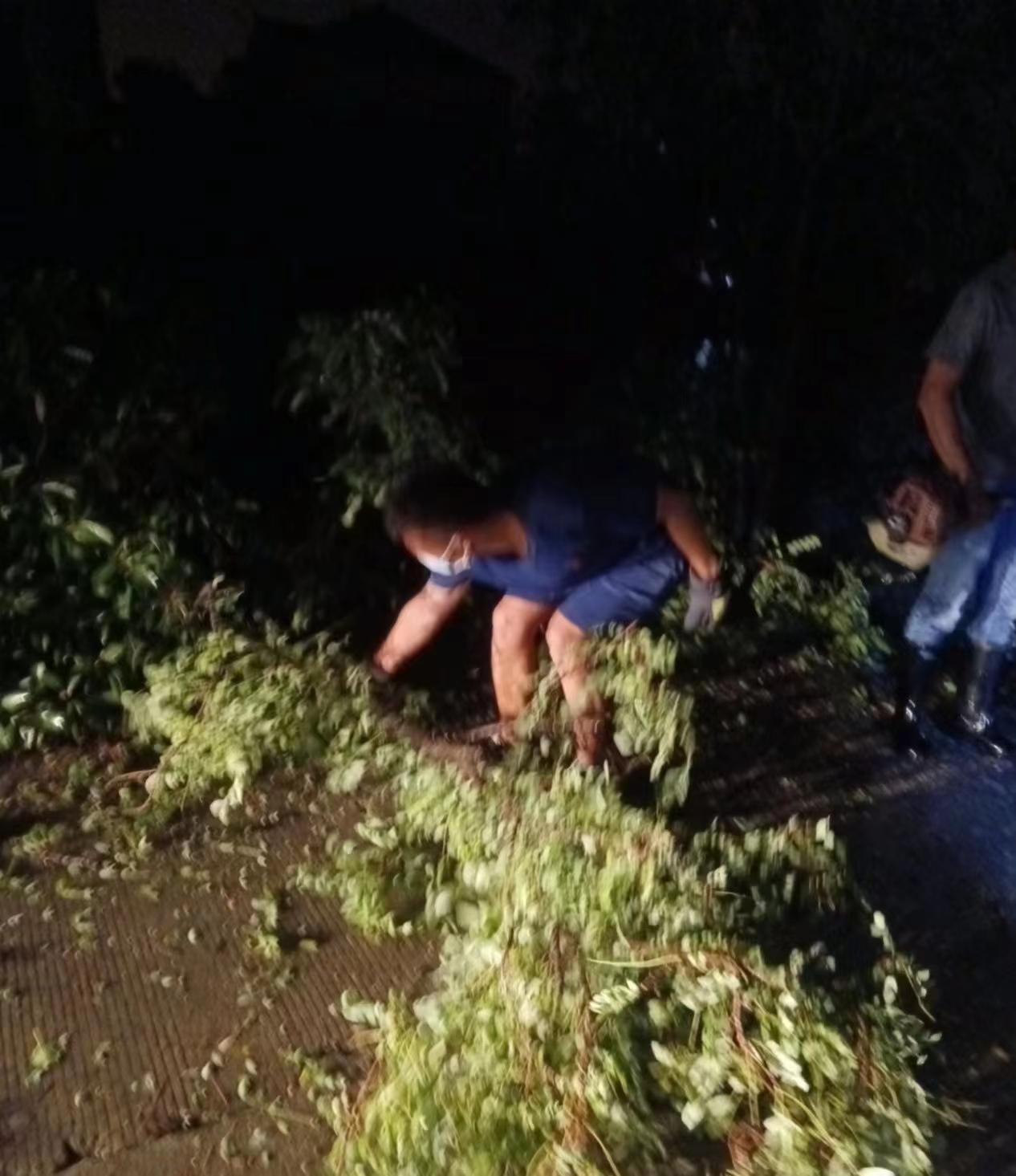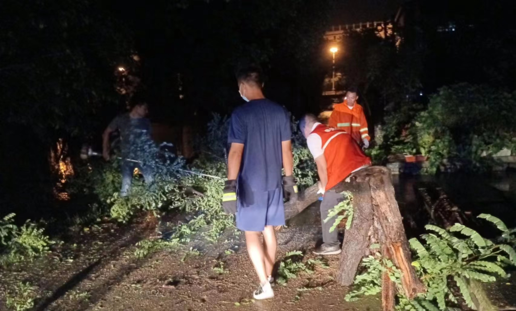 台风过后,协助清理吹倒大树、刮断树枝、垃圾杂物,清除路面障碍,确保道路正常通行。