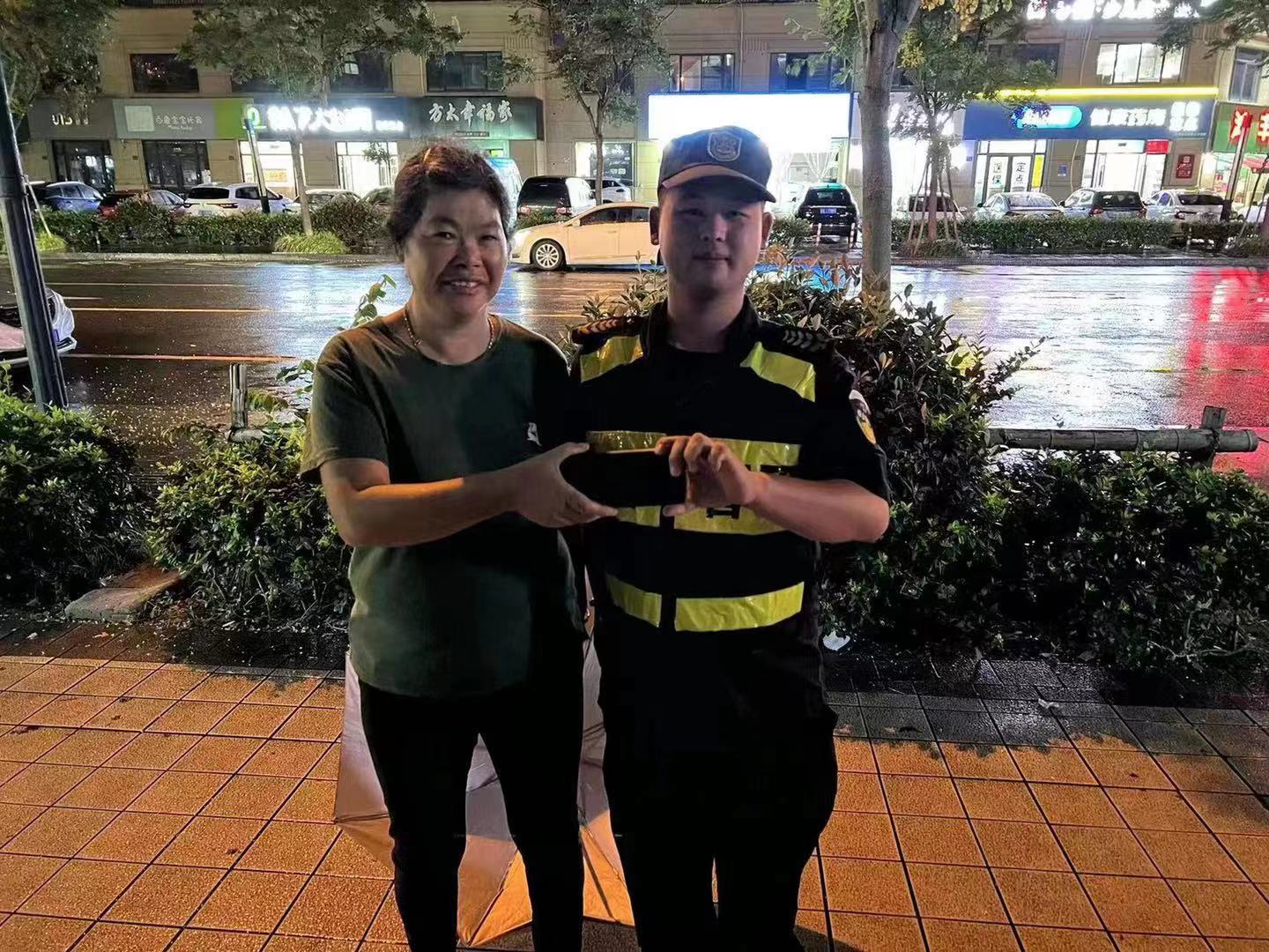 不一会,一位中年女子急匆匆地赶到约定地点。在核实信息,确认女子是失主后,张彬洋将手机交还给了她。拿着手机,女子激动地再三向民泰队员表示感谢。