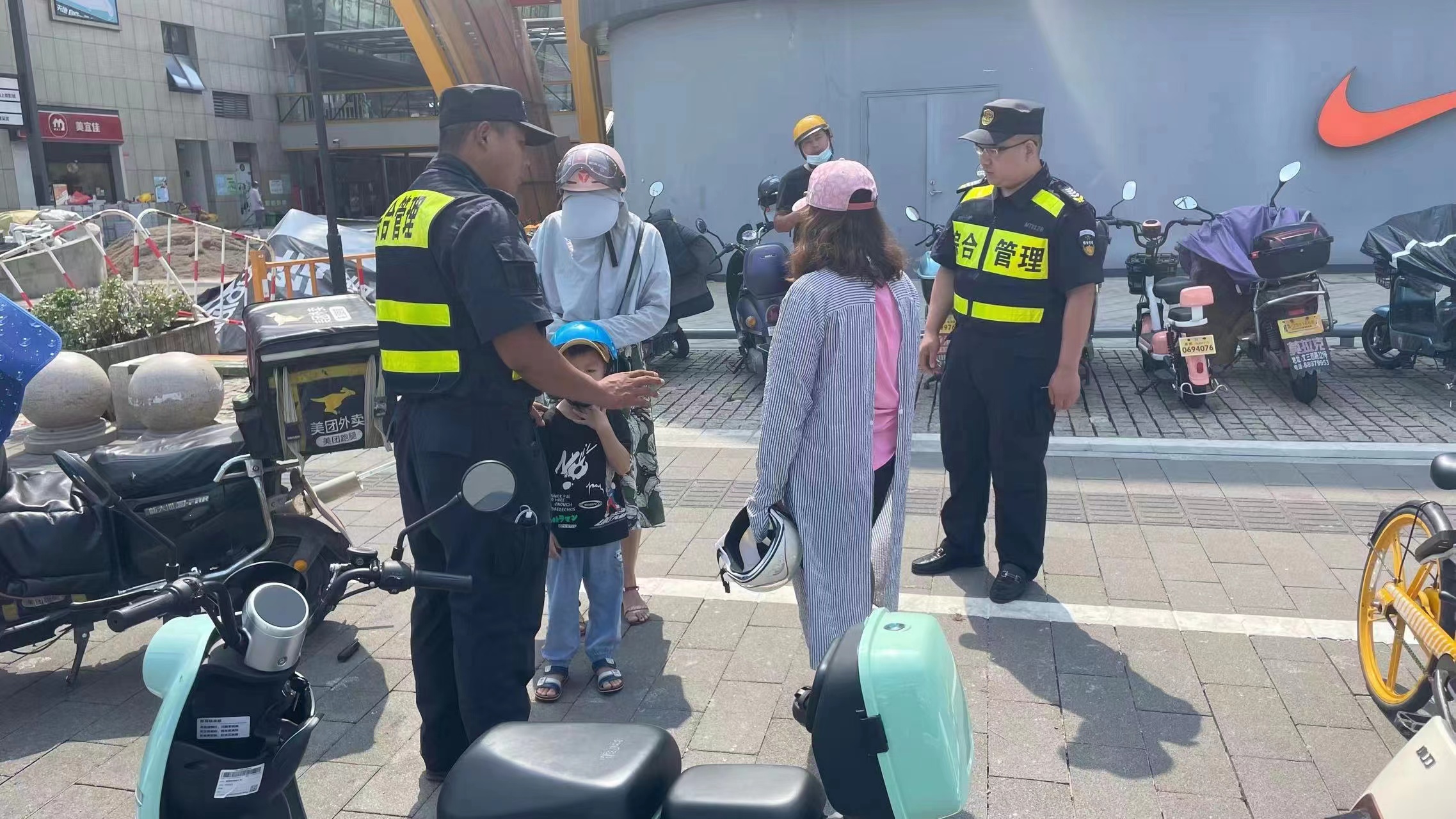 9月23日,浙江民泰公司驻杭州市余杭区闲林市容项目员工帮助走散小男孩找到家人。