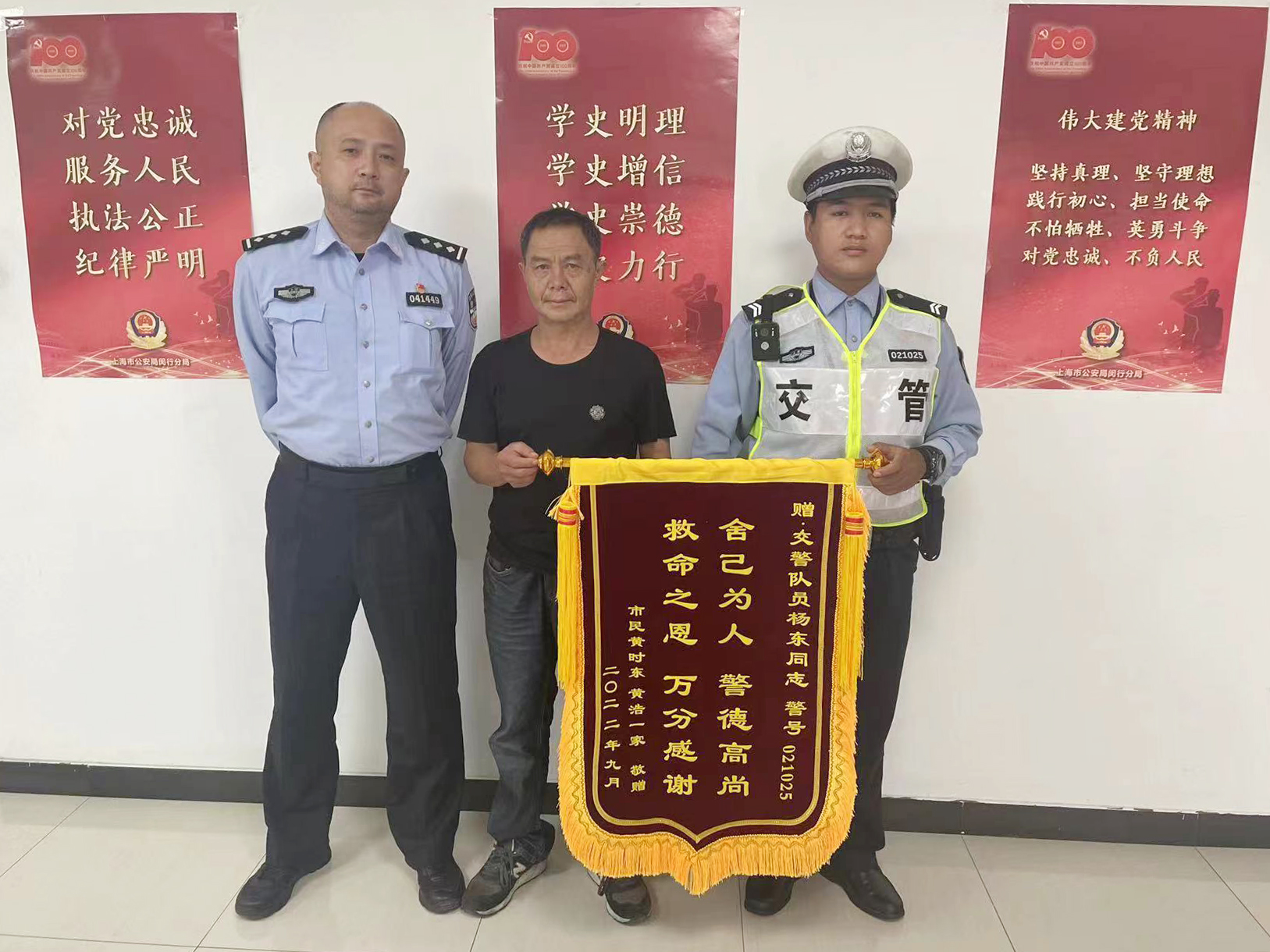9月21日,宗保公司驻闵行交管辅助项目收到市民黄先生送来的一面绣有“舍已为人 警德高尚 救命之恩 万分感谢”的锦旗,感谢宗保员工杨东热心救自己落水母亲的行为。