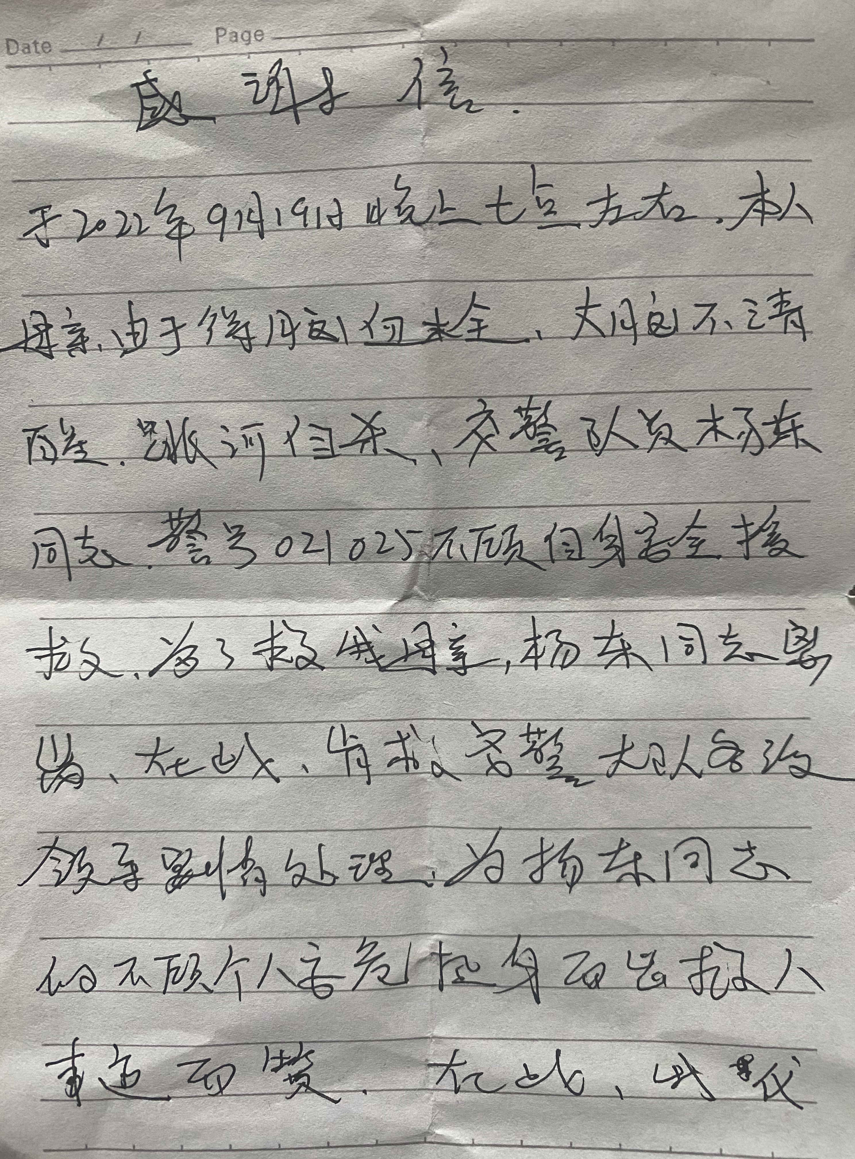 9月19日16:00,杨东在虹莘虹泉路口值勤时,突然接到总台通知:虹莘-虹泉路口南侧的蒲汇塘桥下,有一老太掉进河里,速前往现场察看。杨东迅速赶到了现场,看到一老太半边身体已经滑落进河水里。情况紧急,杨东立刻冲到河道边,招呼其他群众一起将老太从河水里拉了上来。