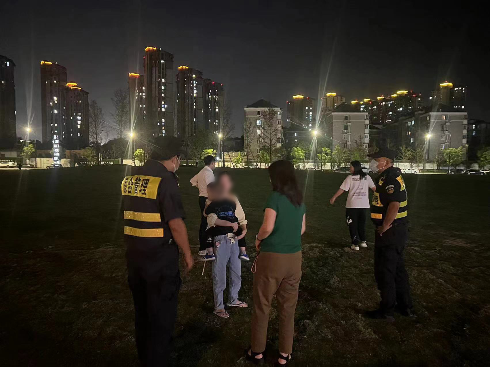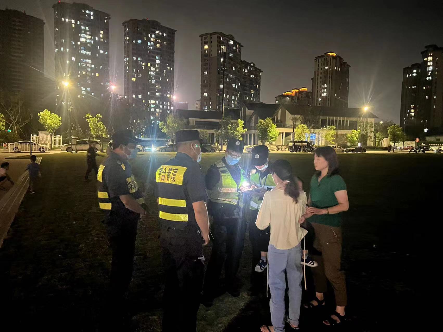 当天21:10,冯奥、朱富豪和卢鹏在闲林老街大草坪附近巡查时,发现一小男孩在路边来回徘徊,身边没有大人陪伴。
