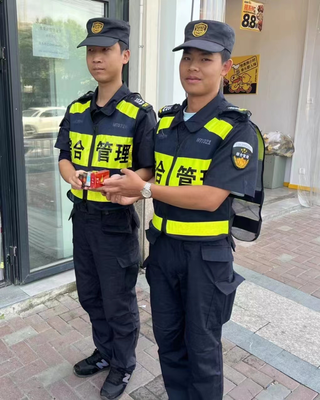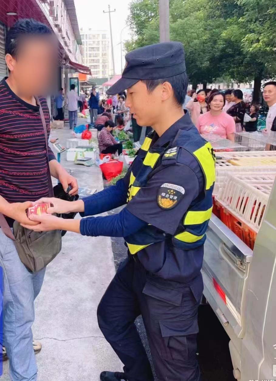 当日7:20,雍正维和陈浩东在五常街道同顺街与繁惠路交叉口永福菜场值勤时,一流动摊贩要将四包香烟塞到两名队员手中,试图以此让两人照顾其摊位。