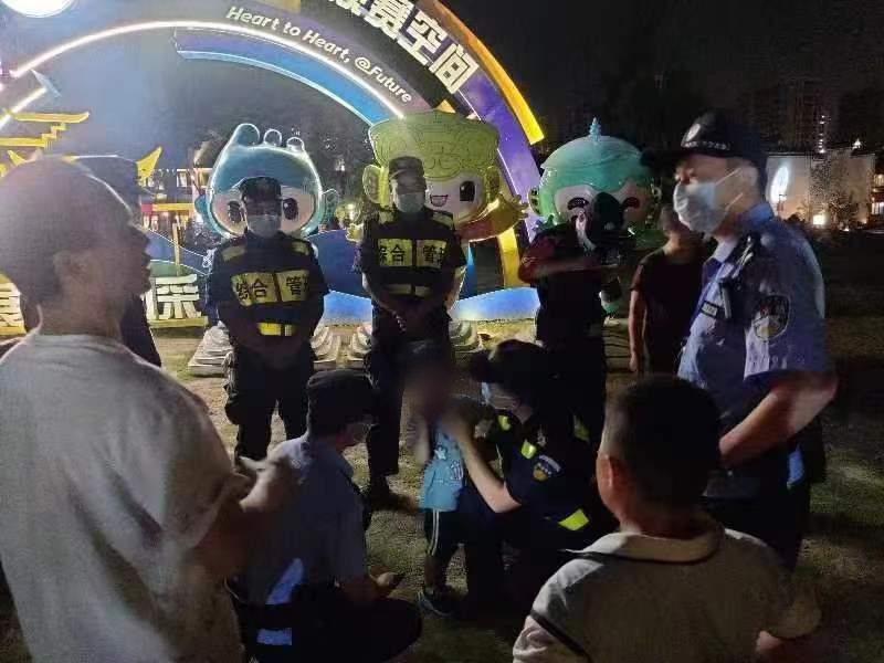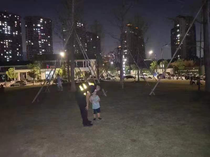 当天20:40,公司员工马书龙和吴浩浩在闲林老街大草坪附近巡察时,看到一个小男孩边哭边四处张望,身边没有大人陪伴监护,疑似与家人走散。