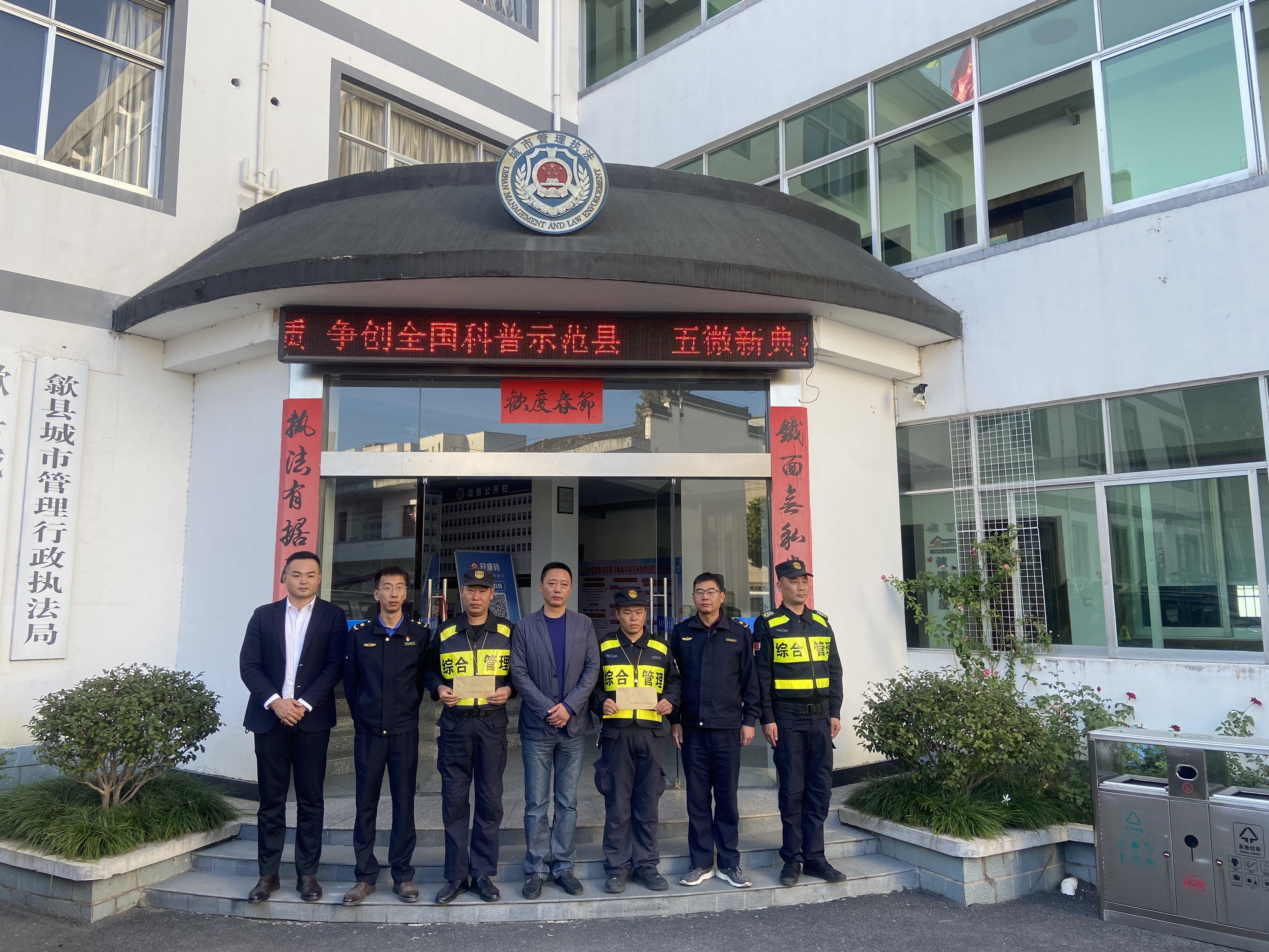 10月11日,安徽省黄山市歙县城市管理行政执法局领导慰问宗保员工,对员工韩洪亮和高小三在突发事件处置过程中的出色表现给予肯定和表扬。