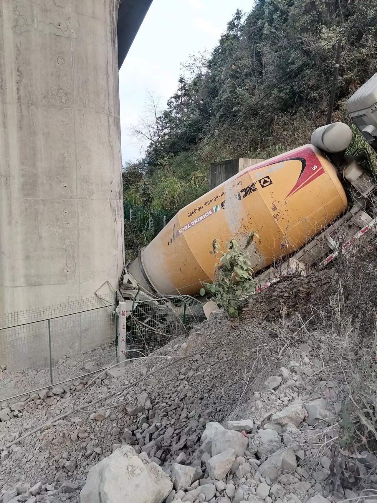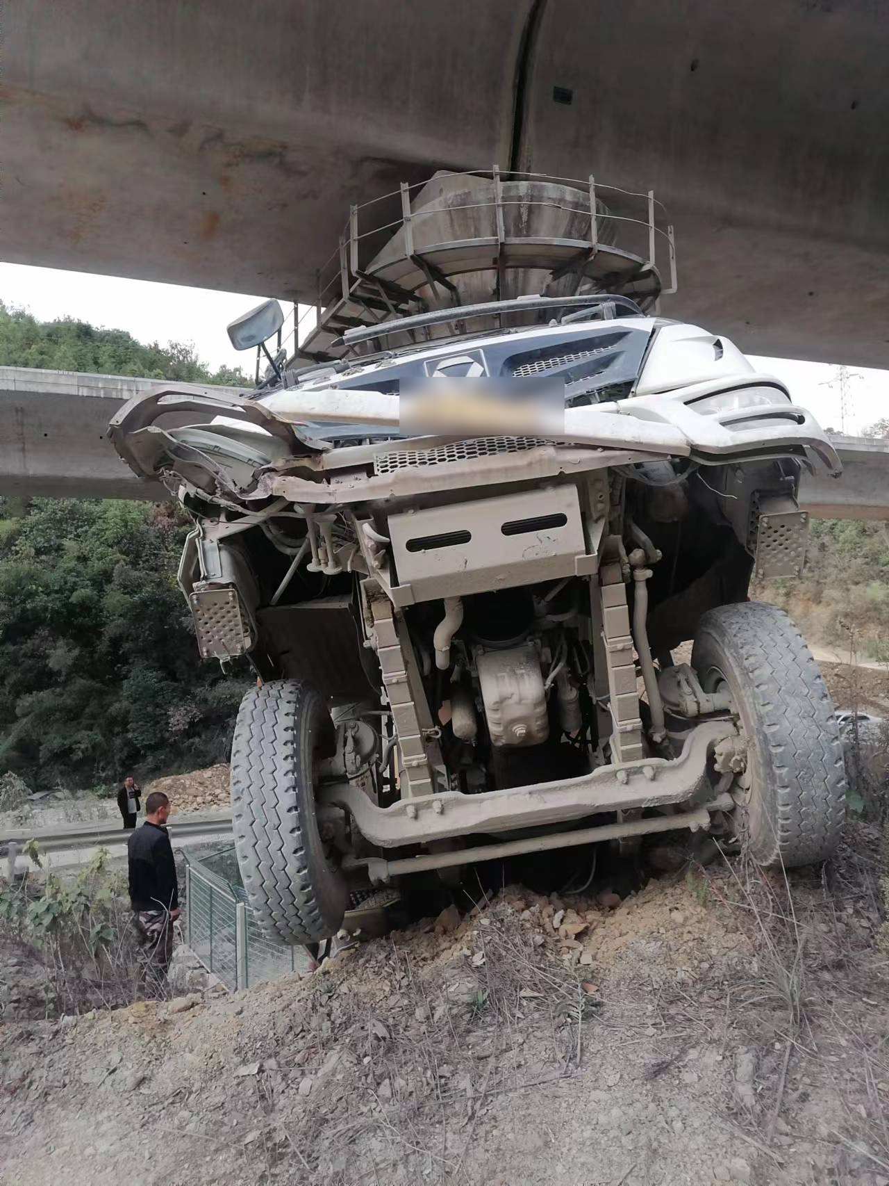 当日16:52,公司员工吴敏红在杭黄高铁外坞特大桥K123+161处巡逻时,发现一辆水泥罐车从20号桥墩处掉下,撞击并卡在桥墩上动弹不得,严重威胁着高铁线路的行车安全。