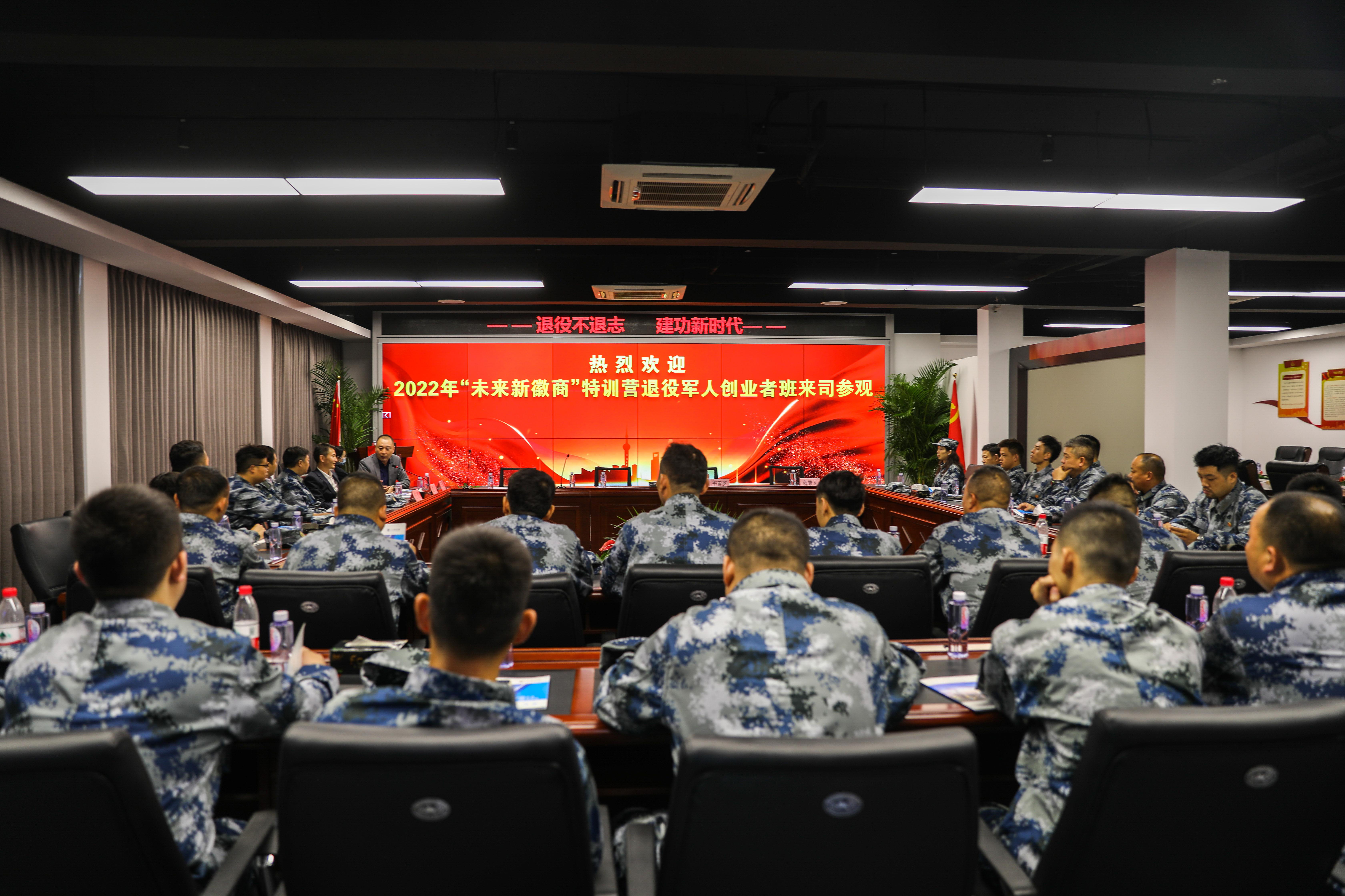 11月12日下午,2022年“未来新徽商”特训营退役军人创业者班学员在安徽省退役军人事务厅就业创业处二级调研员李素芝的带领下来公司参观,公司董事长王耀全程陪同。