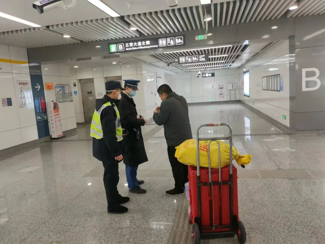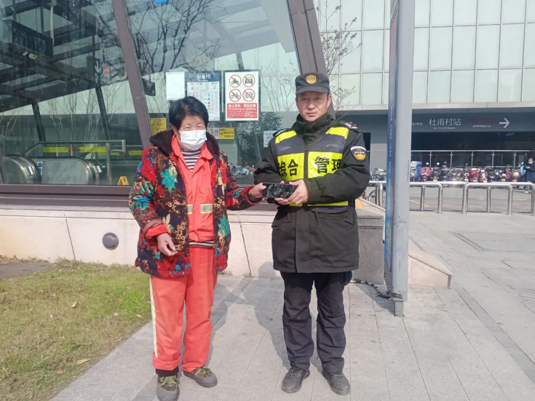 当日凌晨2:36,公司员工孟颜和李晓在五常街道余杭塘路永福地铁站E出口巡逻时,看到一个推着大拉杆箱的男子在地铁口来回走动,便赶紧上前询问。原来该男子是位盲人,因行动不便准备在地铁口凑合一晚,等天亮再坐地铁去其工作的地方。