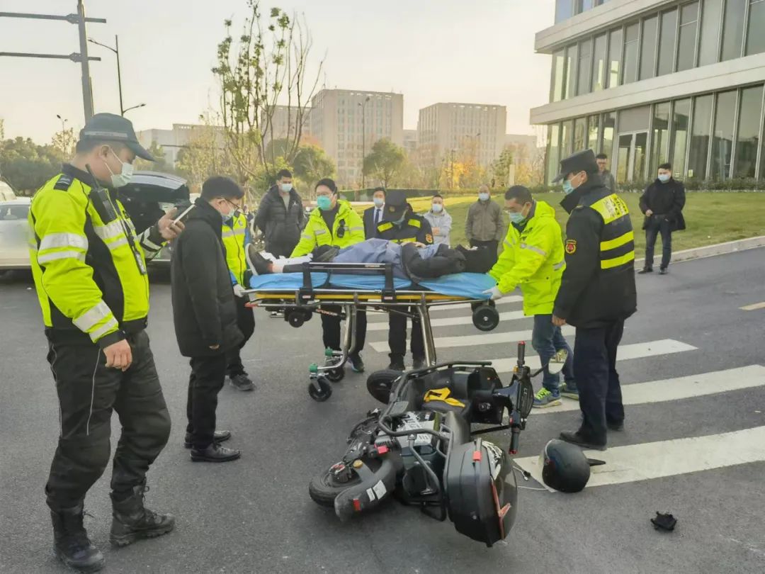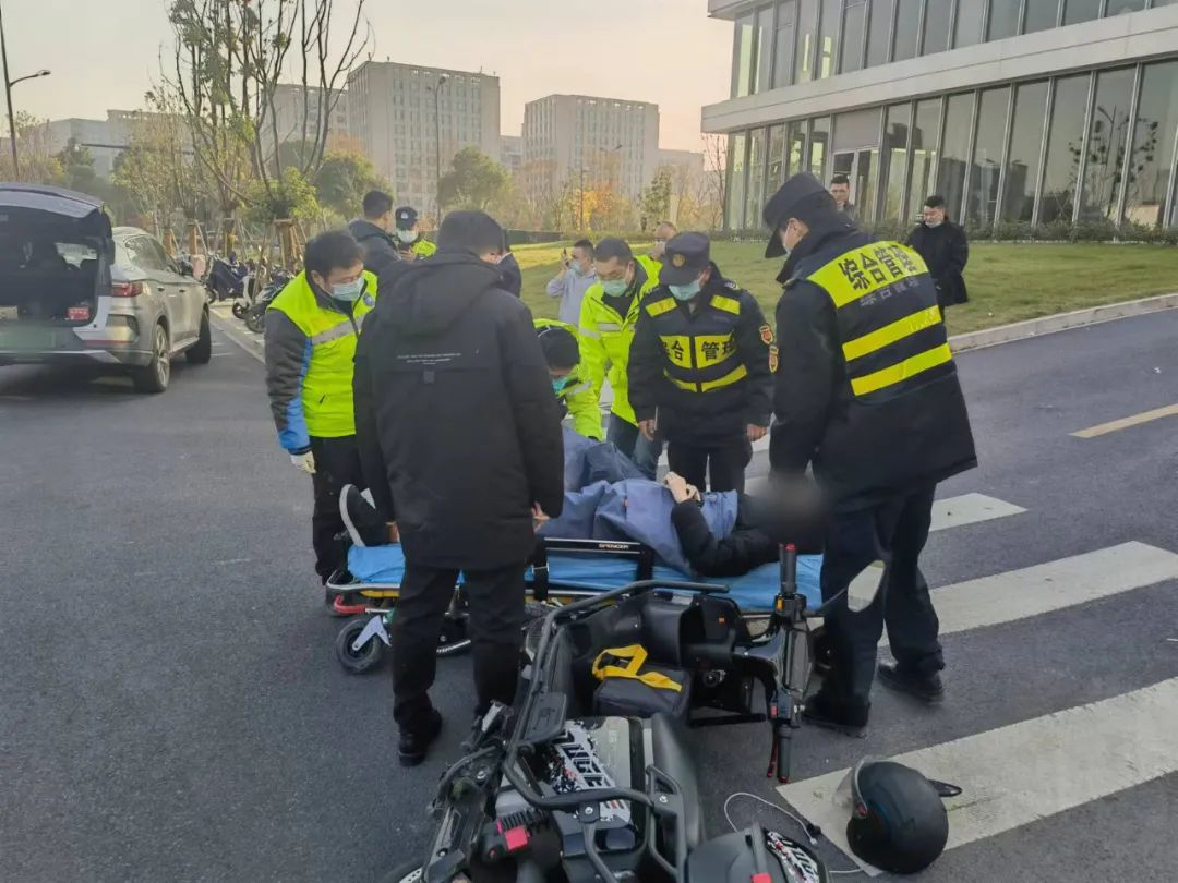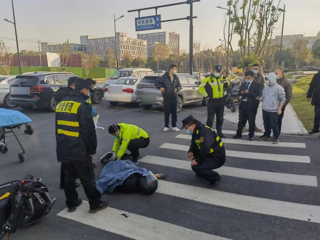 当日15:16,公司员工魏文鹏、董怀义和赵启在五常街道余杭塘路小滕街口巡查时,目睹了一起交通事故——一辆电动车为了躲避一辆右拐的白色轿车急刹车摔倒在地,骑电瓶车男子受伤躺在路上无法起身。