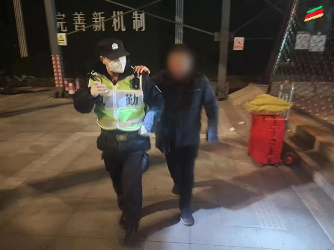 冬日深夜气温低,为防止发生意外,两人将情况报告了派出所指挥平台,并按指示将男子先带回派出所暖身,待其酒醒后再送回住所。