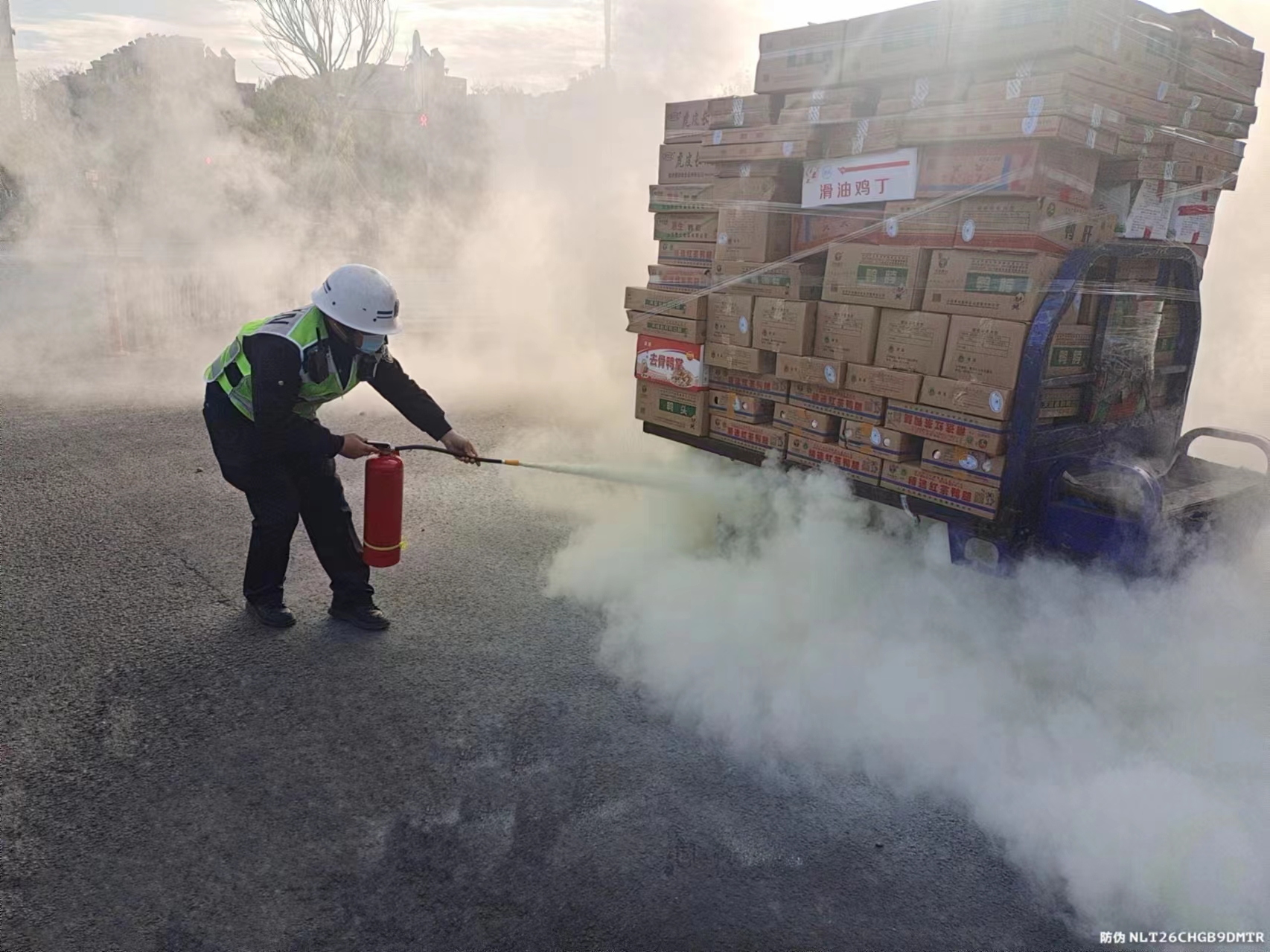 1月9日,浙江民泰公司驻杭州市余杭区良渚物流项目员工帮助扑灭冒烟起火的三轮车。