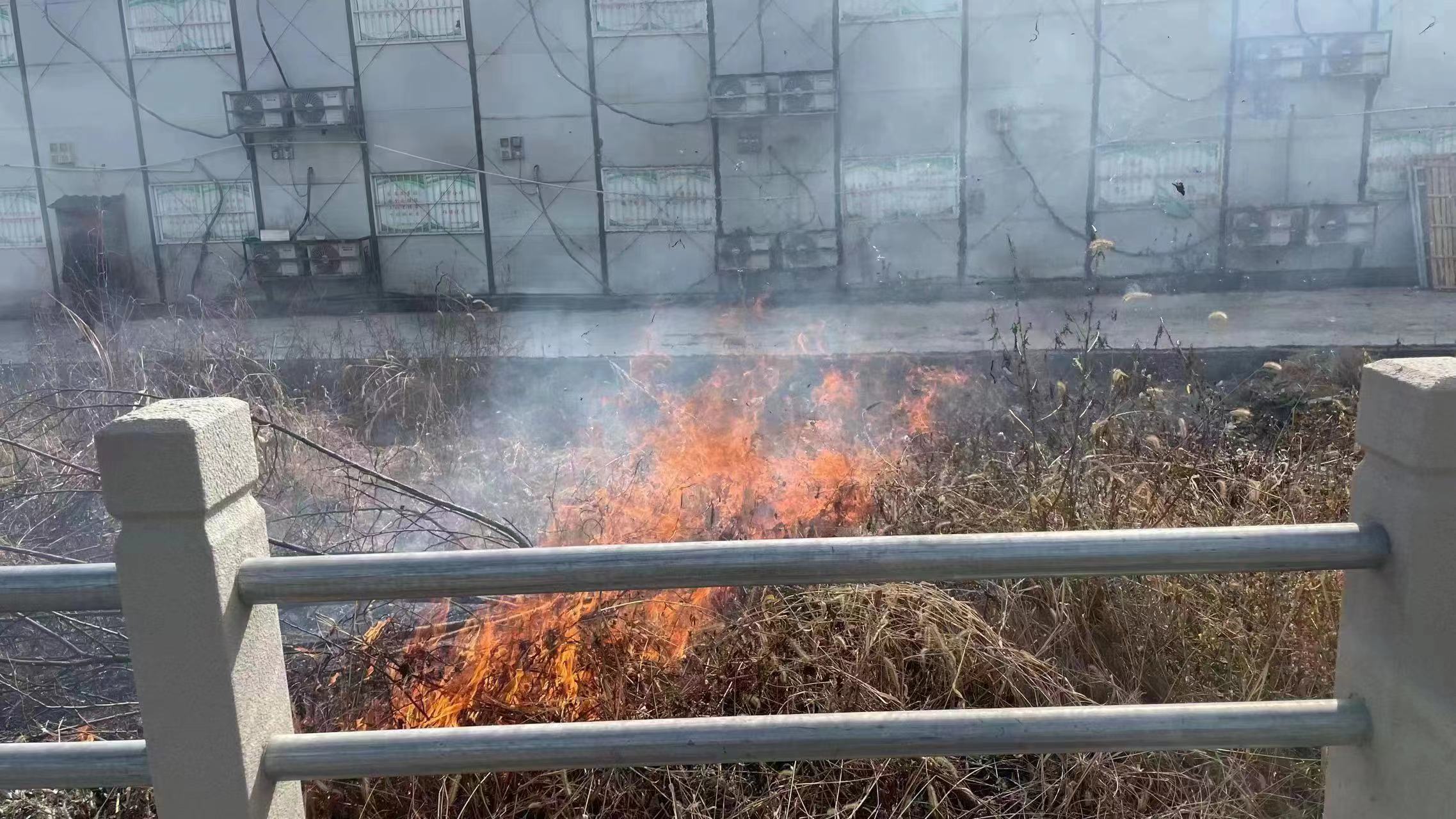 当天6:30,公司员工李山和郑彦兵在年家浜路浦三路桥巡逻时,感觉有阵阵浓烟飘来,随即便循烟察看,发现有处明火,正在向桥旁边的护栏蔓延,而周围全是厚厚的枯萎野草,如不及时处理,可能会带来安全隐患。