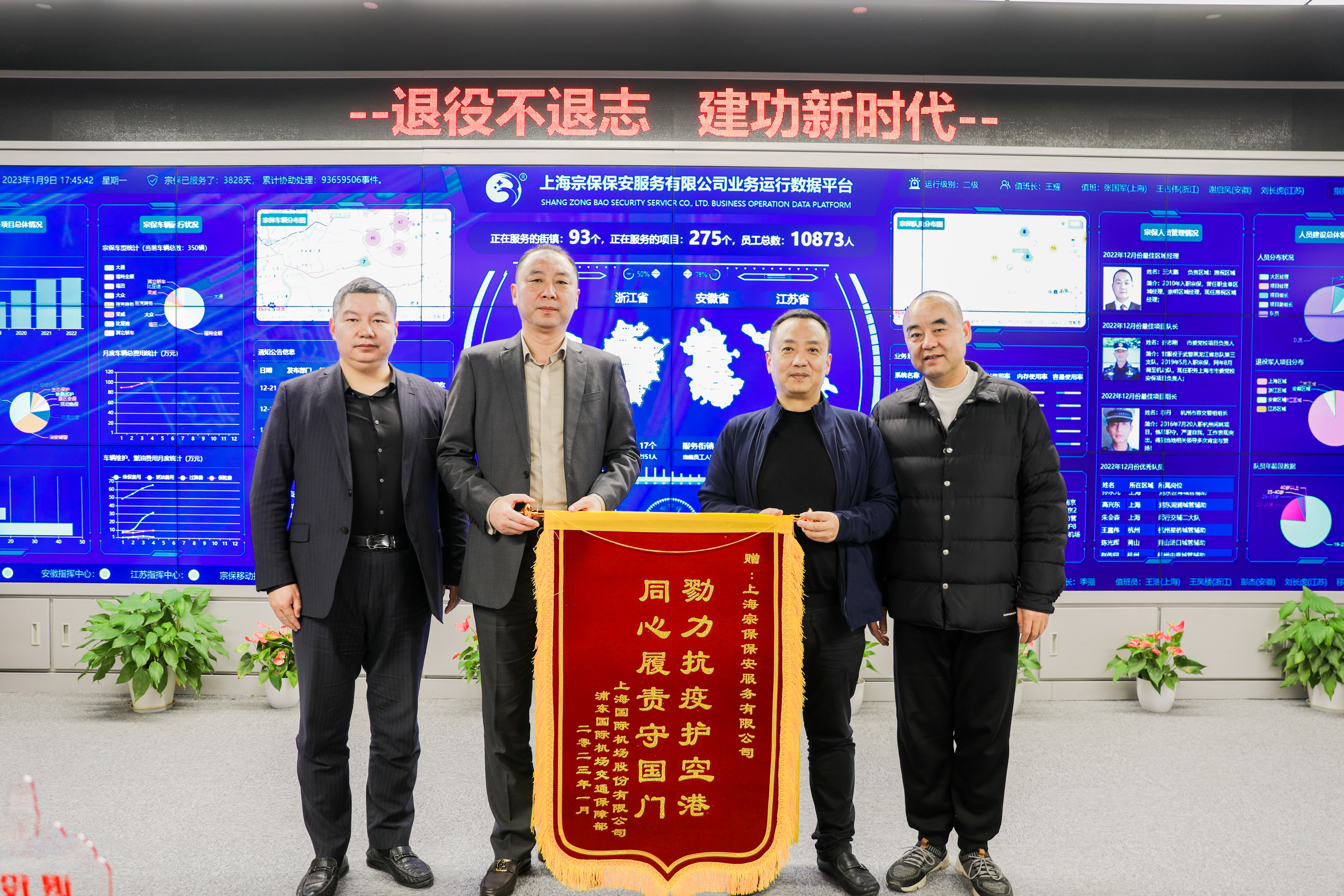 浦东国际机场赠送锦旗,是对公司机场项目员工防疫工作的充分肯定与赞扬。随着疫情防控政策的优化调整,公司驻浦东国际机场疫情防控项目完成了其使命,但公司将铭记机场股份公司的褒奖和期望,秉承员工疫情防控中所展现的担当情怀、奉献精神、工作作风,为持续助推城市精细化管理,体现城市温情,提升城市温度,贡献宗保力量。