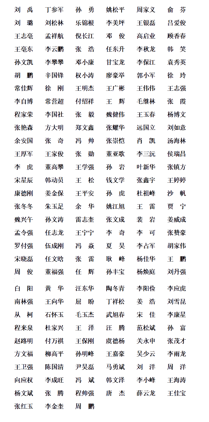 公司董事会在各项目、各区域推荐,广泛征求意见的基础上,评选出了21个“优秀团队”、183名“优秀员工”、45名“优秀退役军人员工”、71名“优秀骨干”和14名“宗保风尚奖”,现对评选出的先进集体和先进个人予以通报表彰。