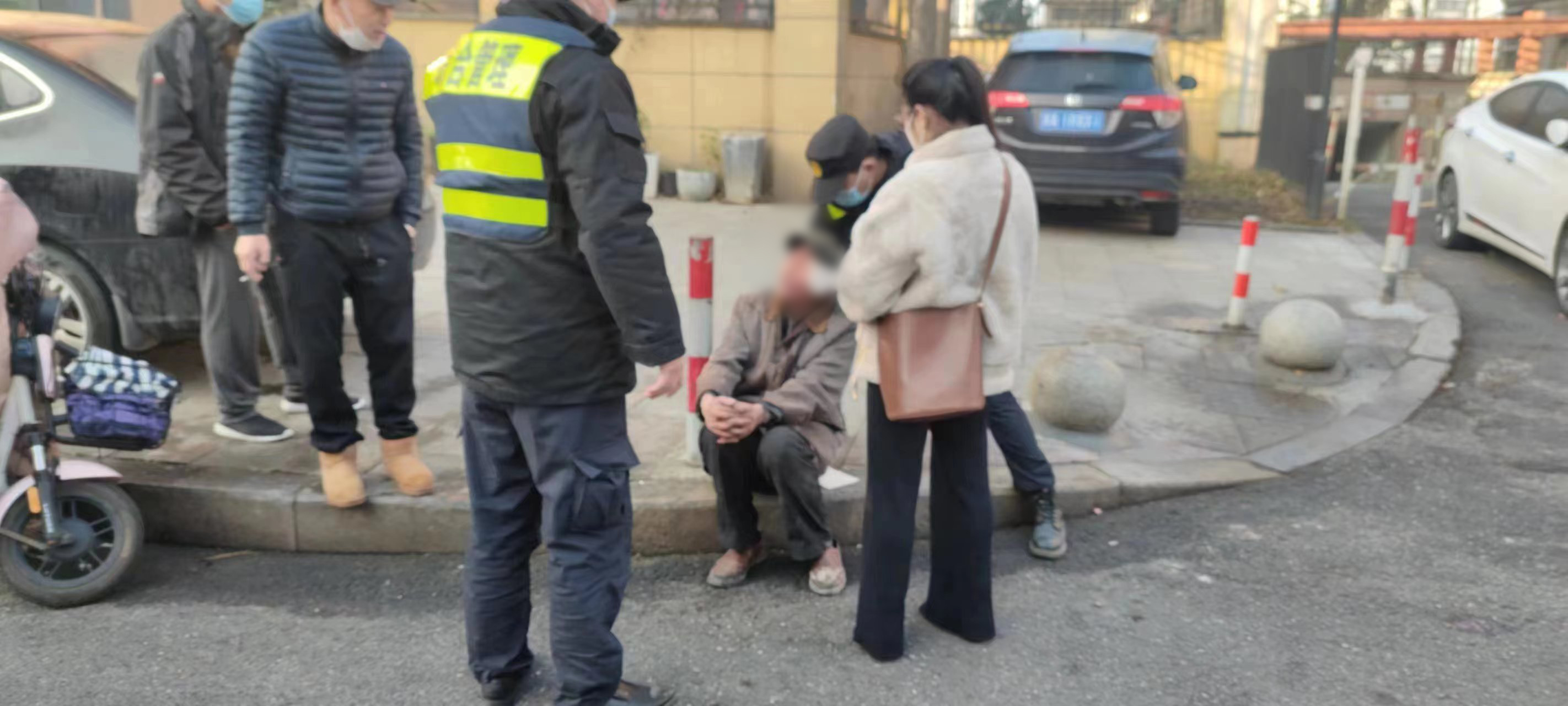 当日8:10,公司员工颜晨龙、曹翔翔和刘寒在五常街道丰岭路浙地人家北侧巡逻时,发现一老人蹲在地上,头上流着血,就急忙上前询问。