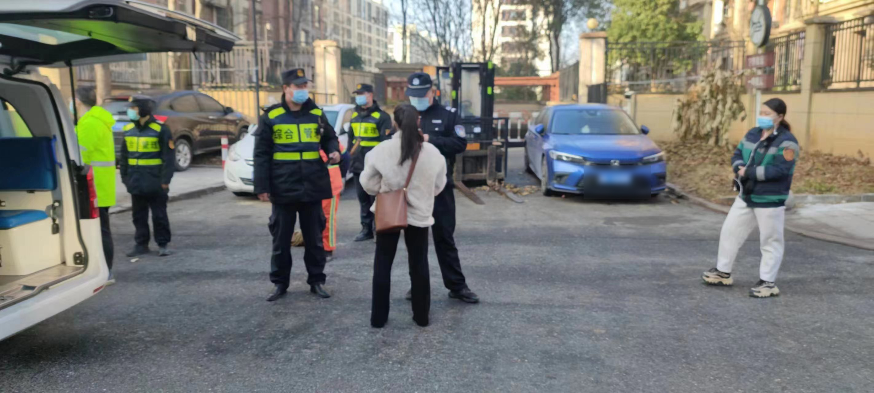 1月12日,浙江民泰公司驻杭州市余杭区五常市容项目员工帮助摔伤老人。