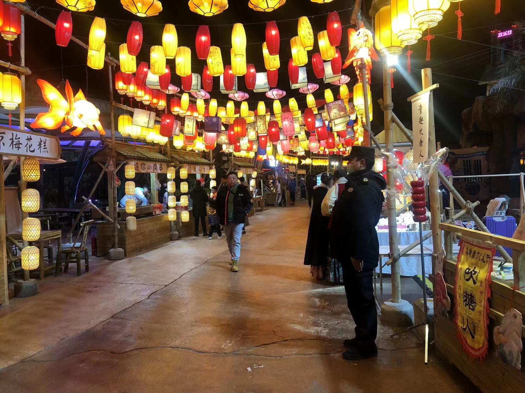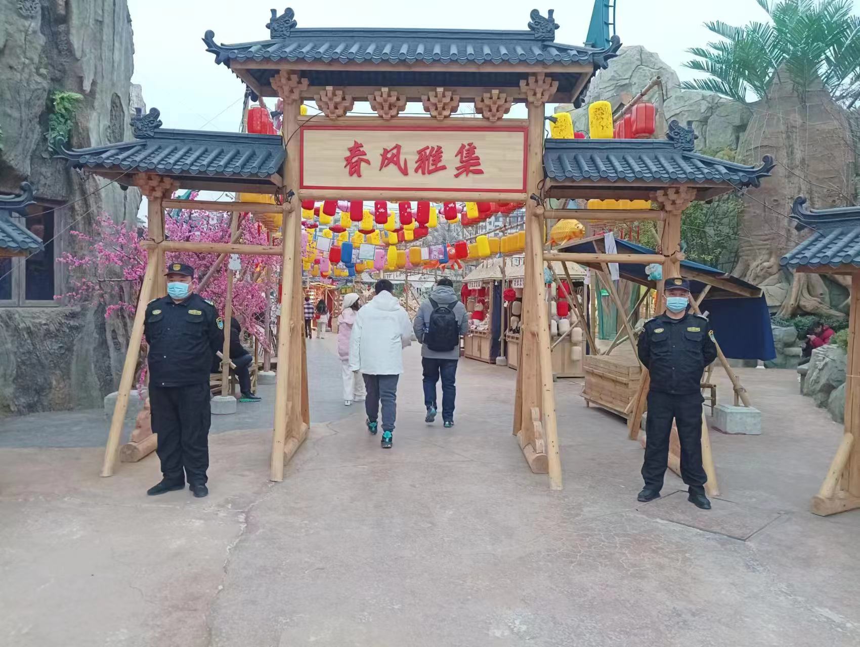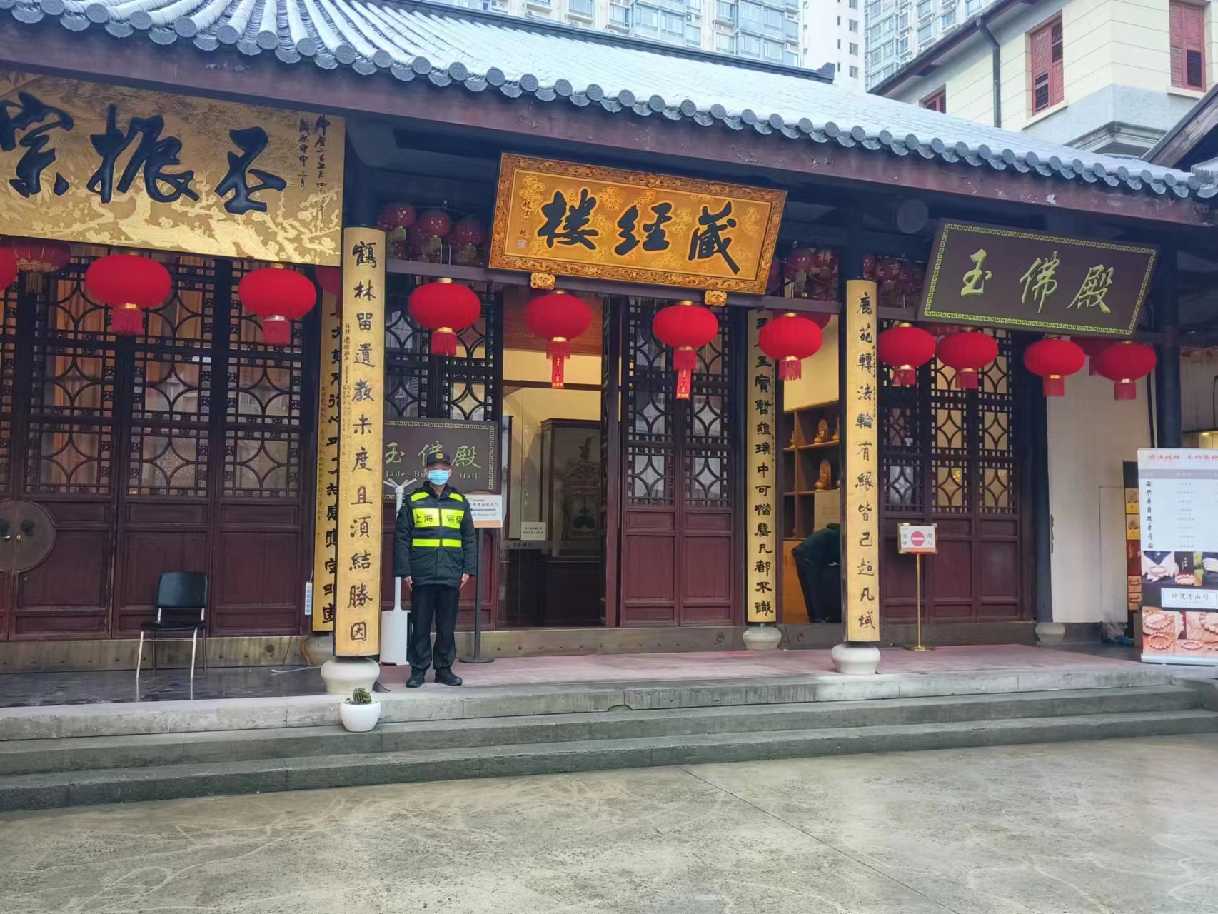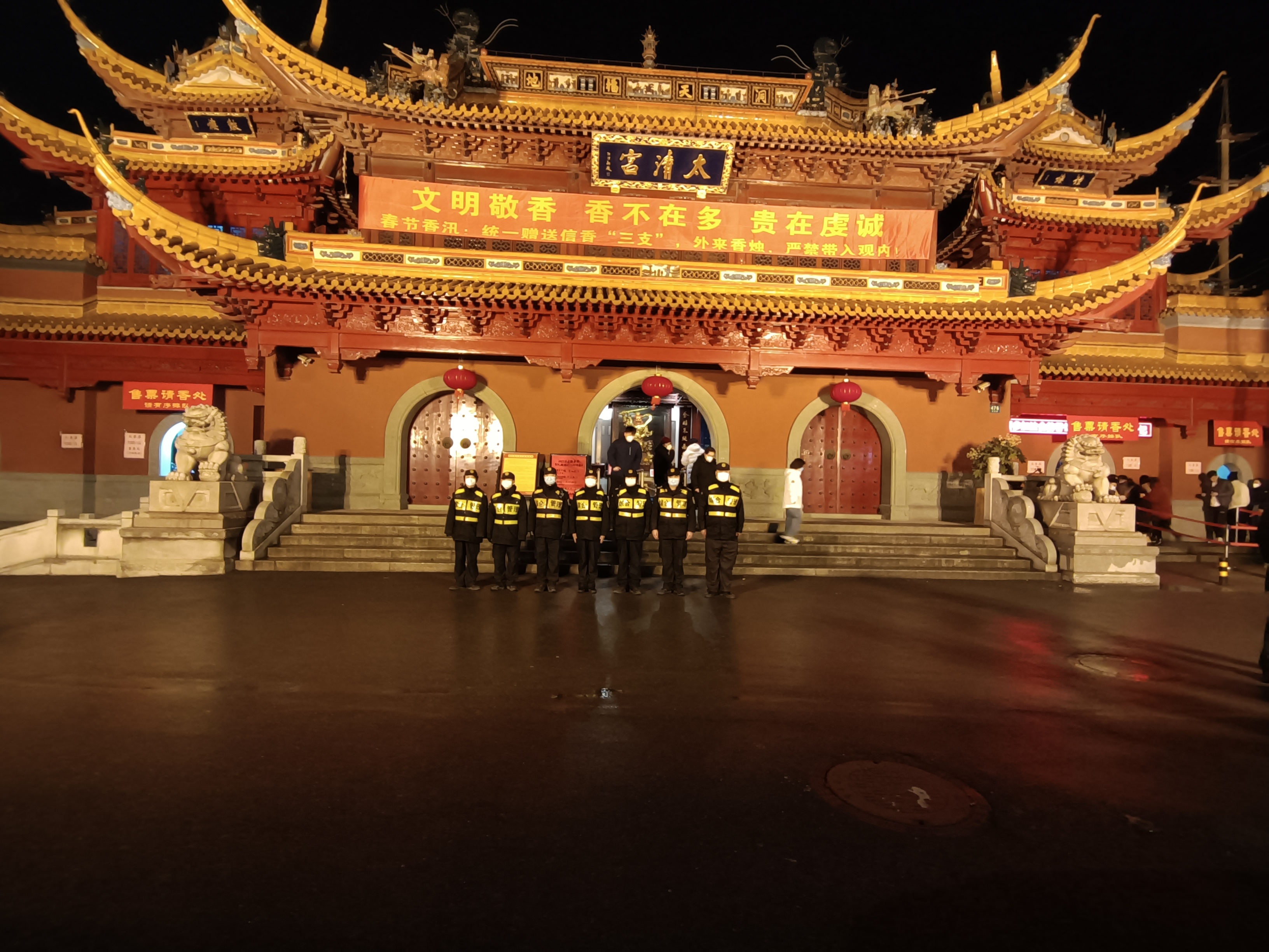 宗保公司按照有关单位的部署和要求,认真筹划、精心组织,全力配合做好除夕夜寺庙敬香祈福、大客流疏导和景区安全保障,协助开展寺庙周边香烛点位巡查,积极进行景区人员指引分流,有力地保障了节日期间市民群众安全游园愉悦赏景。
