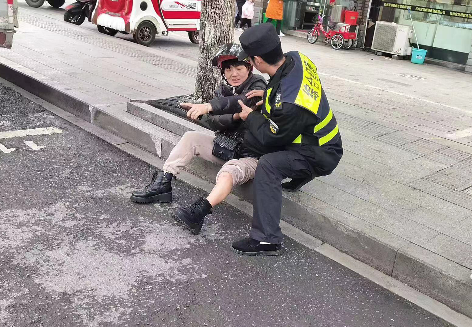 当天15:50,公司员工李佺在良渚农贸市场附近巡逻时,看到一骑电动车过马路的女子被一辆小轿车撞倒在地,便赶紧跑上前察看。
