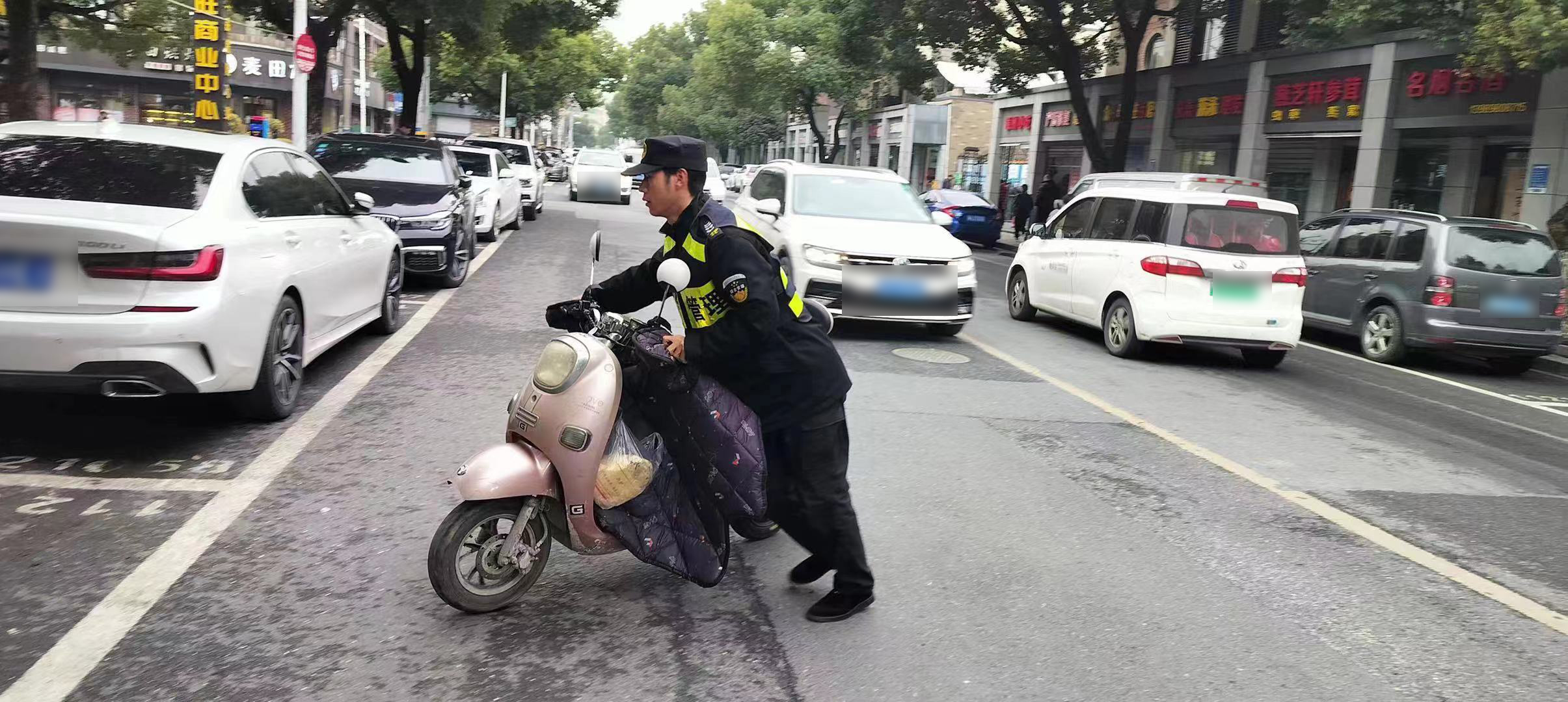 很快,交警赶到现场。待交警处理好现场相关事宜后,李佺又协助交警将电动车移至路边,清理现场遗留物,恢复道路正常通行。
