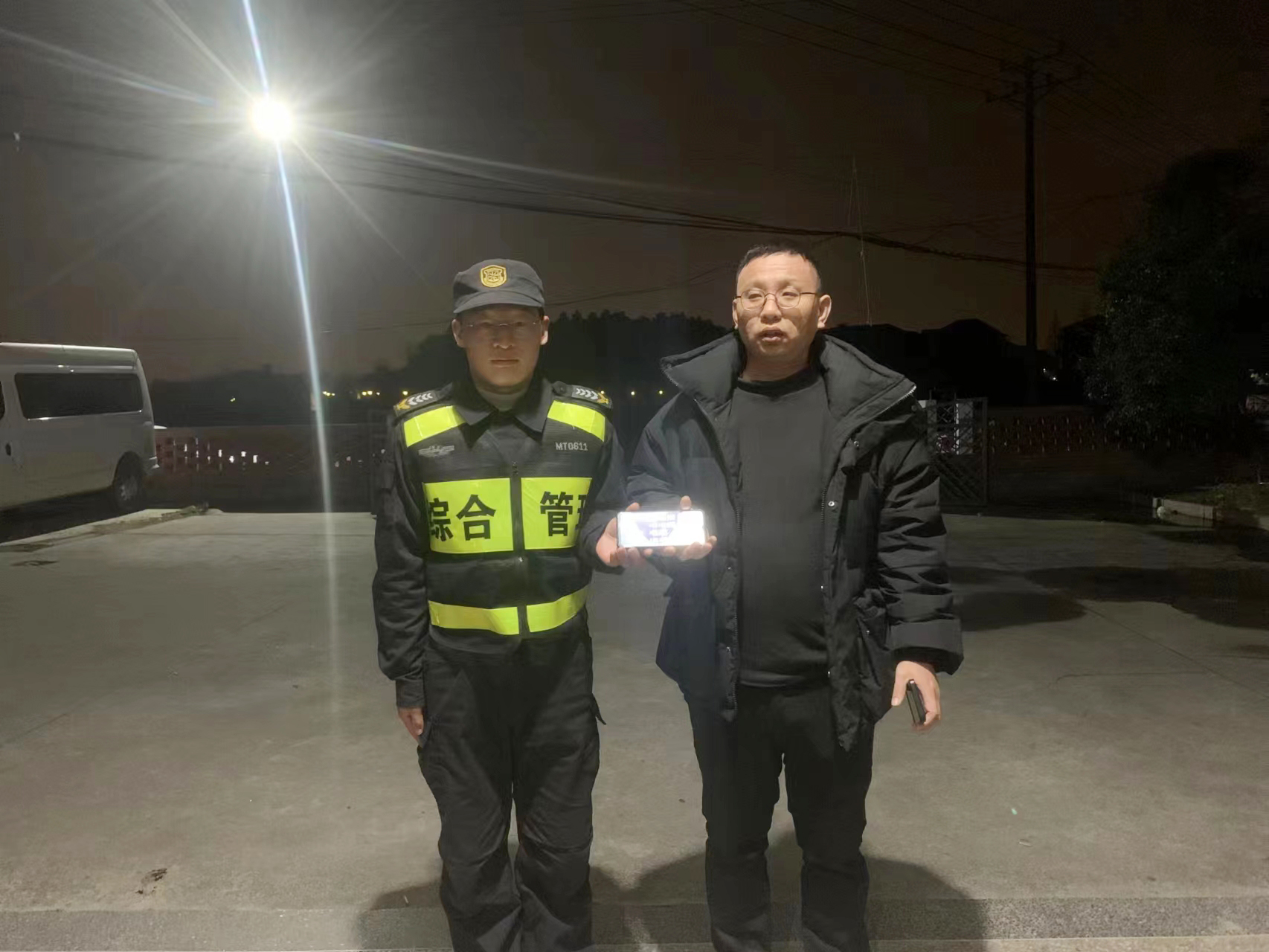 2月25日,宗保公司驻浦东新区陆家嘴社区市容项目梅园站员工捡到手机交还失主,受到感谢。