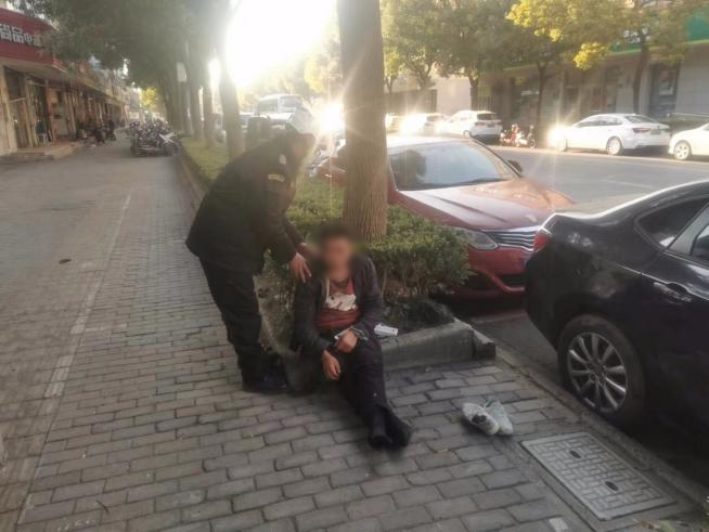 当日20:00左右,公司员工孙天增、罗亚亚、郭鹏辉和赵柯在运河街道日辉路路口巡逻时,发现一名男子躺在湿漉漉的地上,四人见状赶紧上前察看。