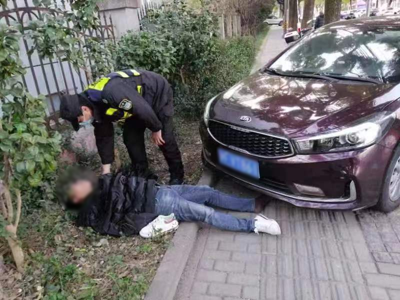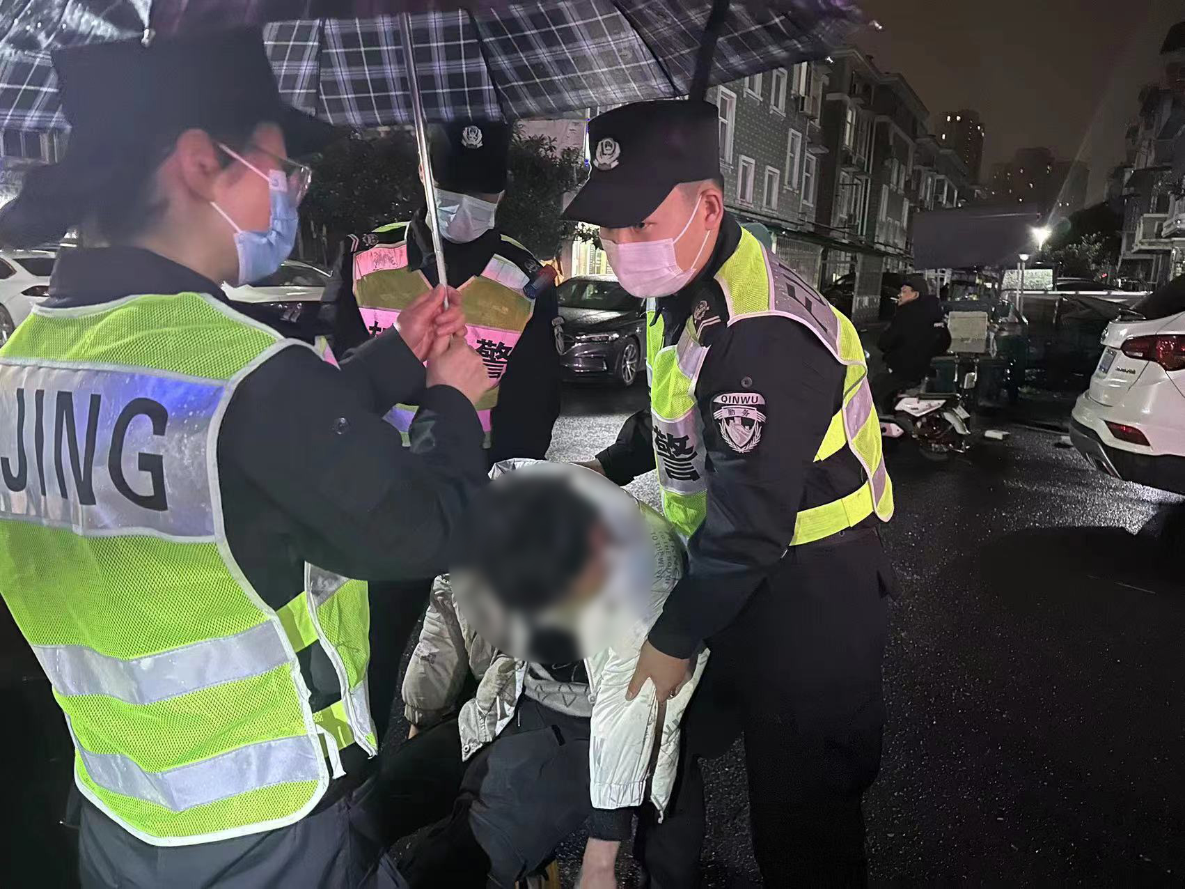 男子身上散发着浓浓的酒味,疑似醉酒。郭鹏辉尝试着想将男子叫醒,询问下他的情况,但该男子言语含糊不清,无法提供有效信息。孙天增和罗亚亚遂将其搀扶到安全地带休息,并将情况报告了派出所值班室。