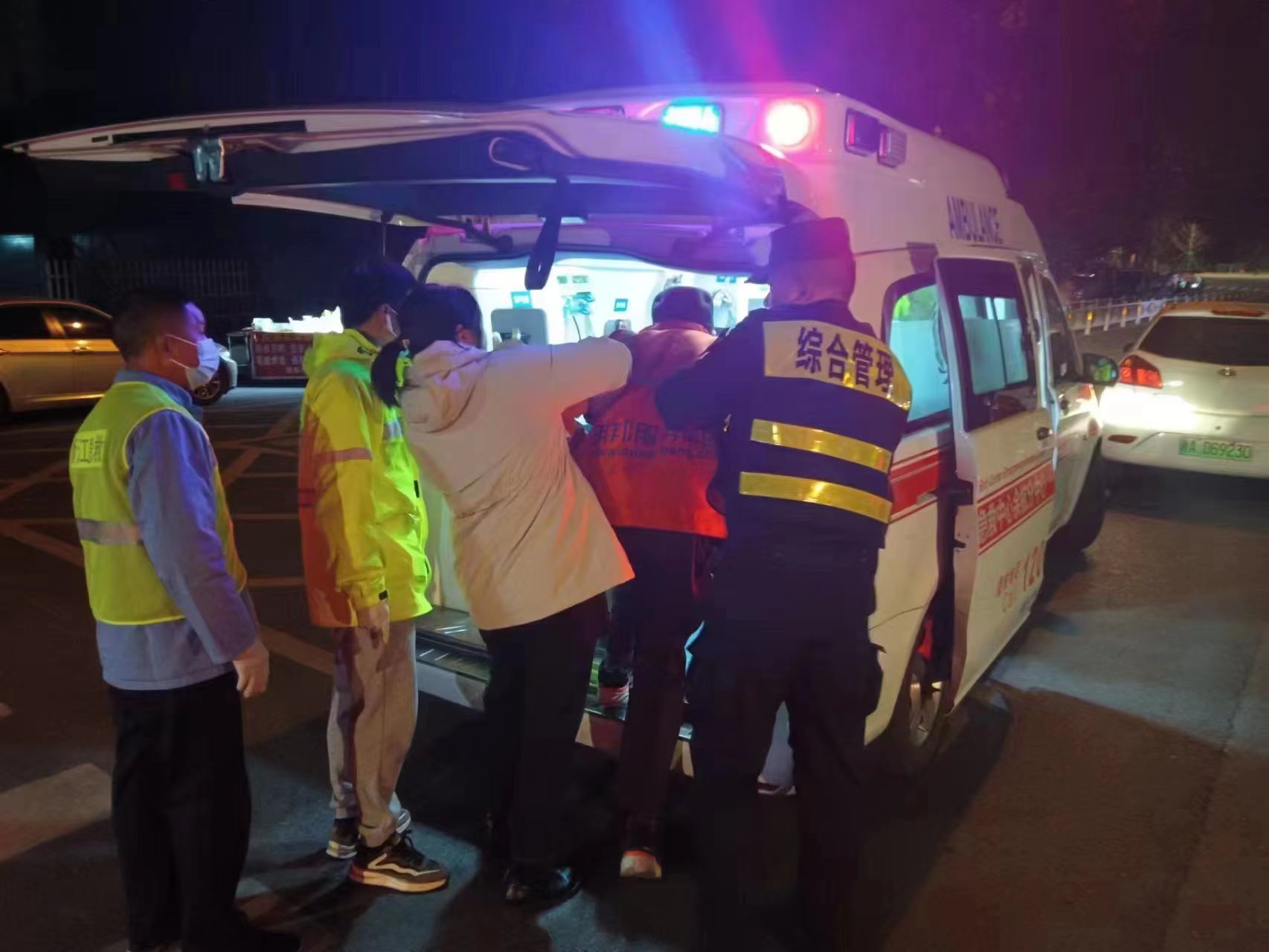 两名员工赶紧上前询问,环卫工表示肚子突然很疼,走不了路,身体好难受。两名员工立即将情况报告了项目队长,并按指示暂停巡逻守护好环卫工。在征得环卫工同意后,帮助拨打了120急救电话。