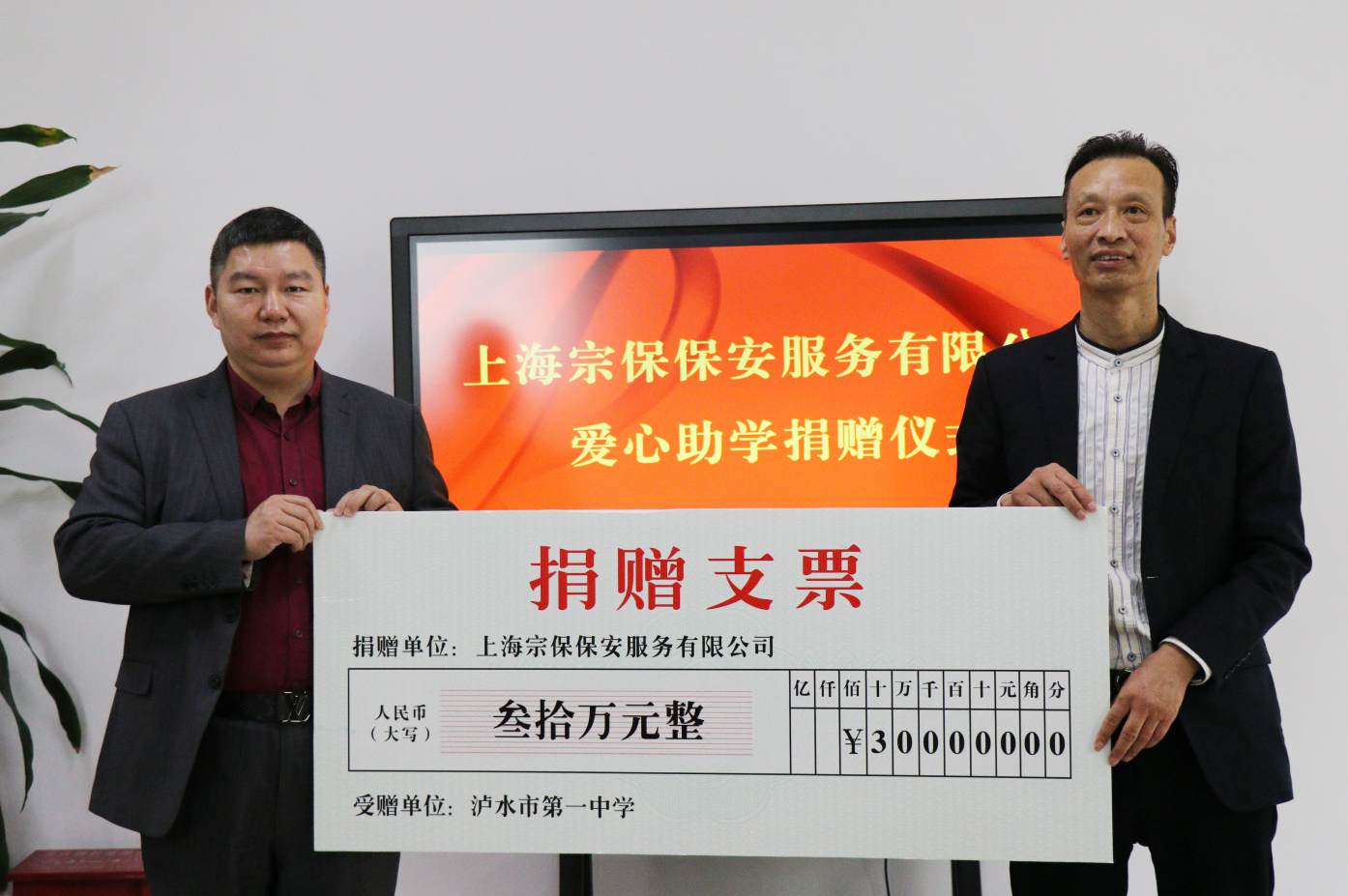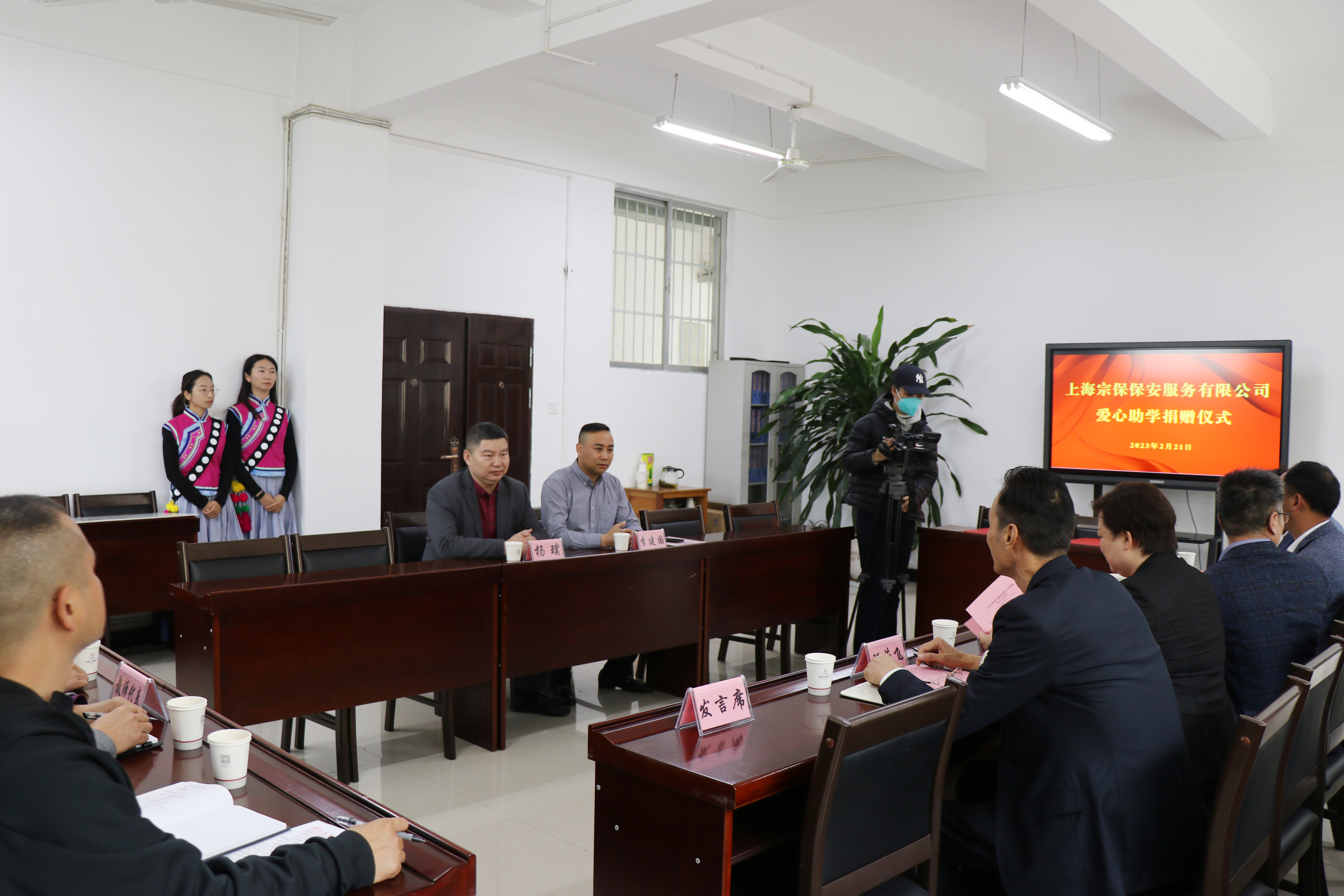 2月21日上午10时,上海宗保保安服务有限公司爱心助学捐赠仪式在云南省怒江州泸水市第一中学举行。怒江州州委常委、副州长黄克鹏出席,泸水市副市长高艳飞主持捐赠仪式。 公司副总经理杨璞一行专程来到泸水市第一中学参观学校教学建设,参加“上海宗保保安服务有限公司爱心助学捐赠仪式”,代表公司向泸水市第一中学捐助资金30万元,用于帮助贫困家庭学子圆梦学业。