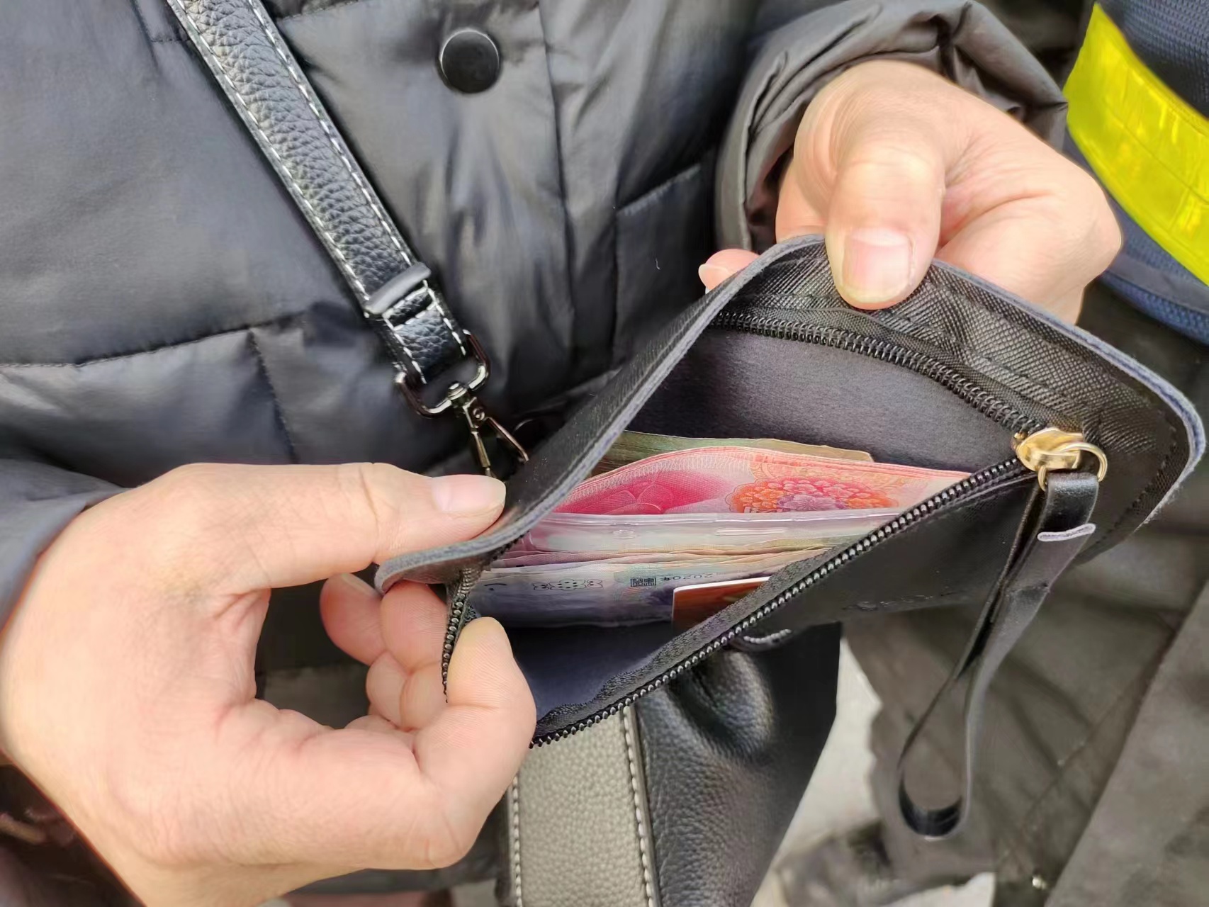 两人等了30多分钟,仍未见人来认领,便将钱包上交了城管中队。8:50左右,一位身穿黑衣听闻信息的女子赶到城管中队认领钱包。