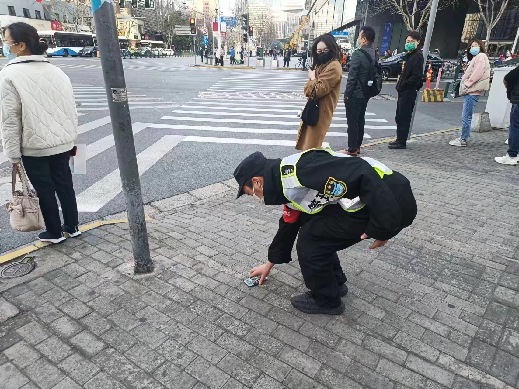 当日8:08,公司员工任金在闵行区莘庄工业区中春路鑫都路路口值勤时,捡到一部华为手机,便立即按照工作流程拍照取证,并上报了项目负责人。