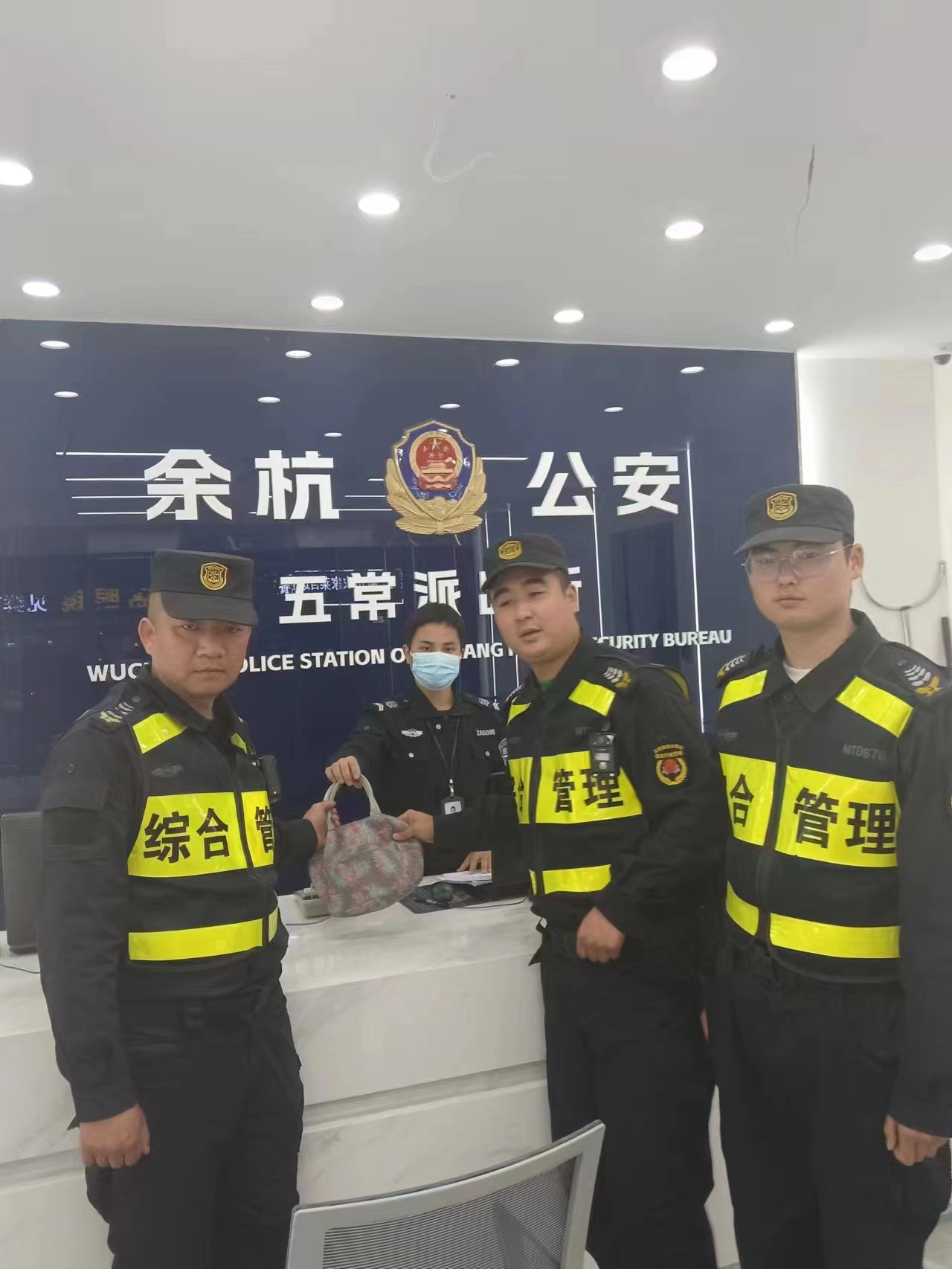 3月14日,浙江民泰公司驻杭州市余杭区五常市容项目员工捡到一手提包上交民警。