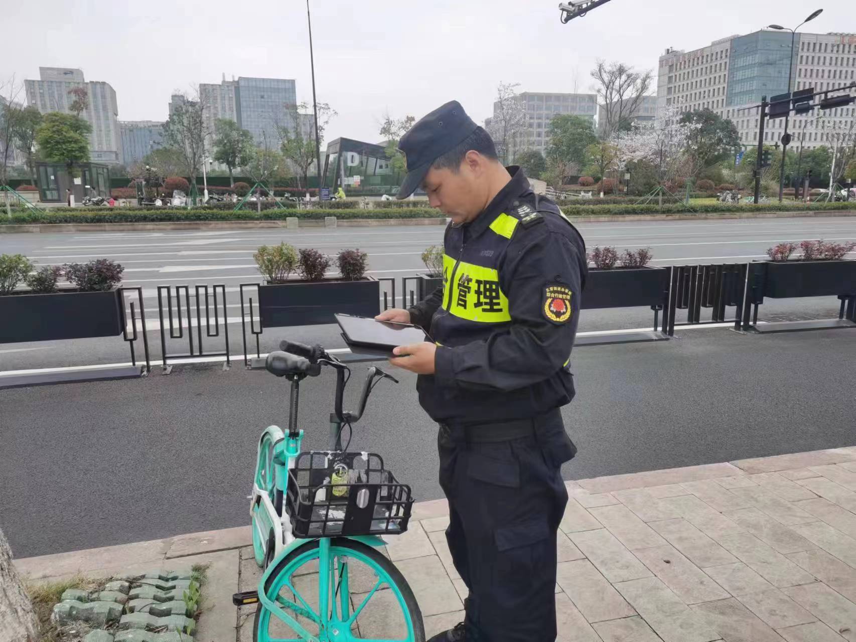 当日12:16,公司员工董文韬在杭师大地铁A口巡查时,在一辆共享单车的储物筐里发现一台平板电脑没人认领,就将情况报告了组长,并按指示守在原地等待。