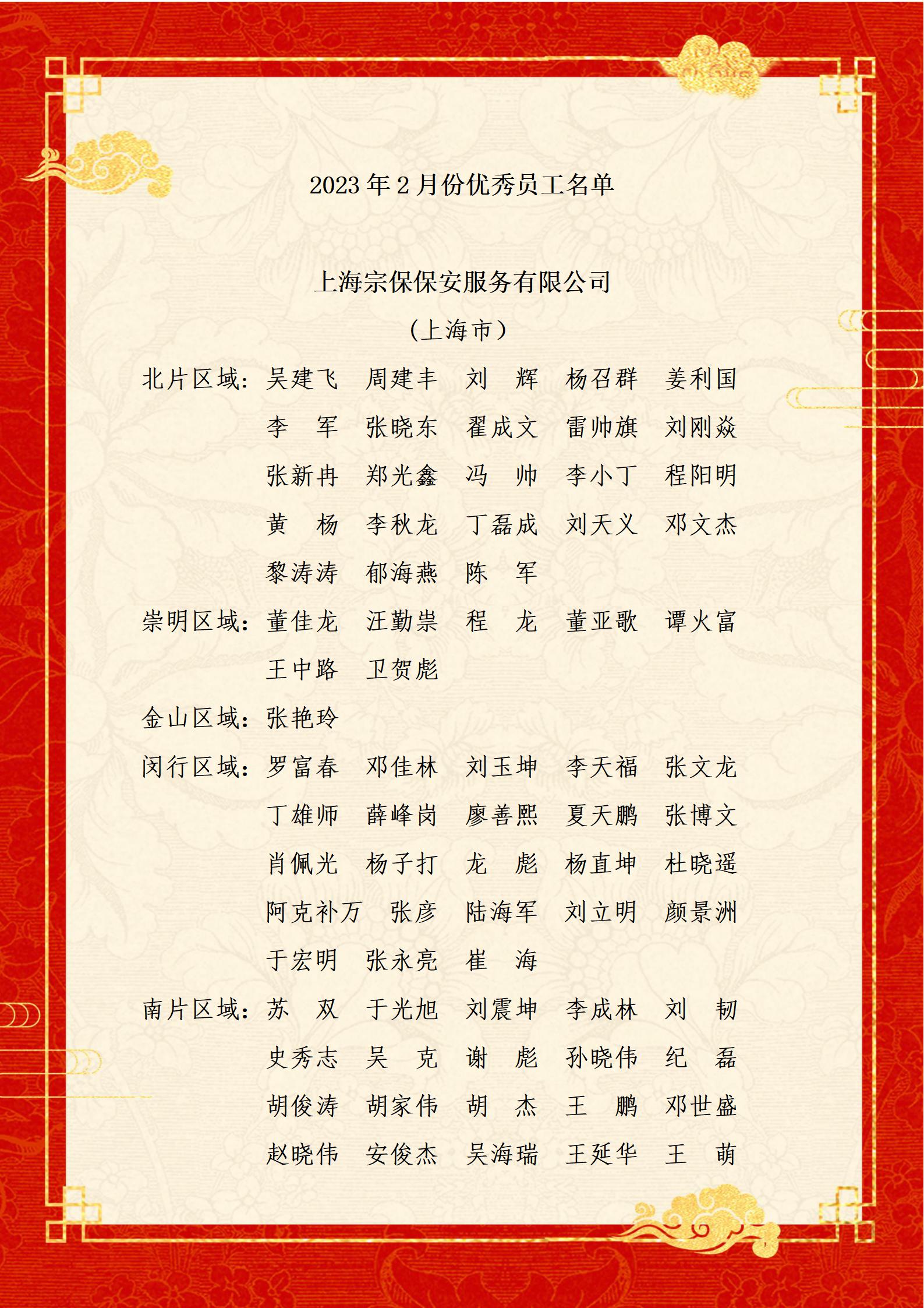 附:2月份优秀员工名单