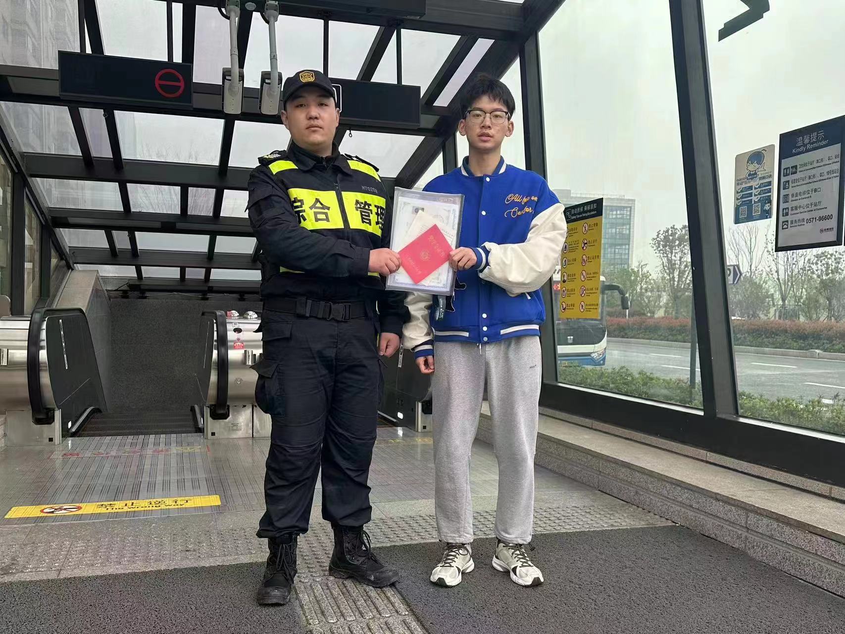 当日13:30,公司员工李振林在杭行路地铁站值勤时,发现一辆共享单车的车筐里有一个文件袋,内有毕业证书、奖学金证书、职业等级证书和个人简历等资料,周围无人也没人认领。考虑到失主可能会返回寻找,李振林便在地铁站边值勤边等待失主。