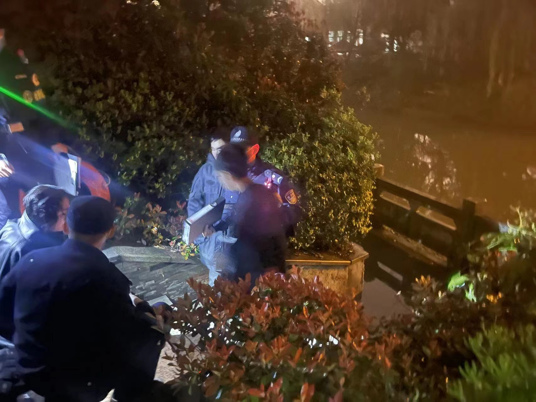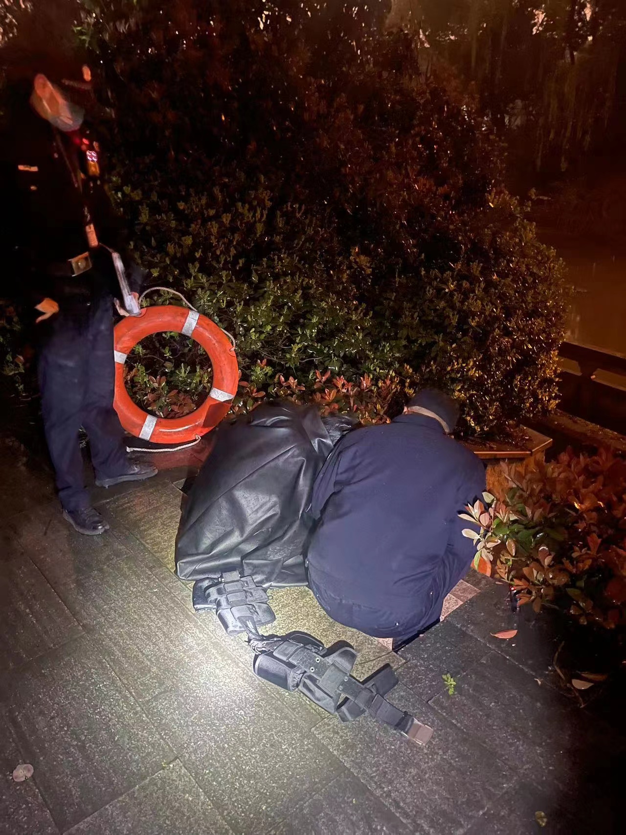当日00:52,公司员工侯世豪和新城派出所辅警刘军巡逻时接到派出所值班室指令,称吴家门1号附近有女子跳河轻生,请立即前往救助。两人快速赶到现场,在热心市民的指引下来到河边,此时的女子大半个身体浸在水中,两只手扒在河边的杂草上,显然快要体力不支了。