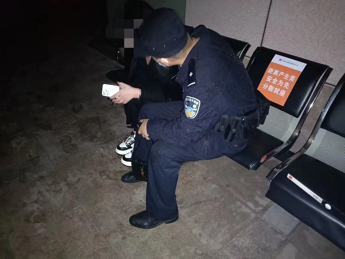 当天21:24,公司员工江涛和周乐邦在派出所勤务分队长冯孝峰带领下巡逻至逸盛路地铁口时,遇到市民孔先生求助,称其儿子孔某与女朋友吵架后发了一张在河边的图片,便再也联系不上了。因 担心儿子一时想不开自杀,请求帮助寻找其儿子。