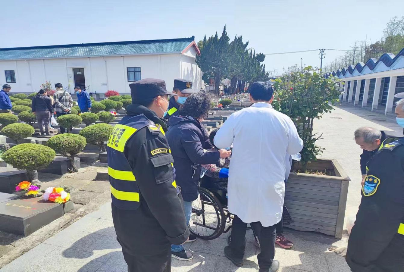 当天13:00,公司员工邵晨和梁士许在东沟静园巡查时,发现一位前来扫墓的老人晕倒在地,一旁的老人家属一时不知无措。两人见状赶紧上前,并立即将情况报告了项目负责人郭崤。