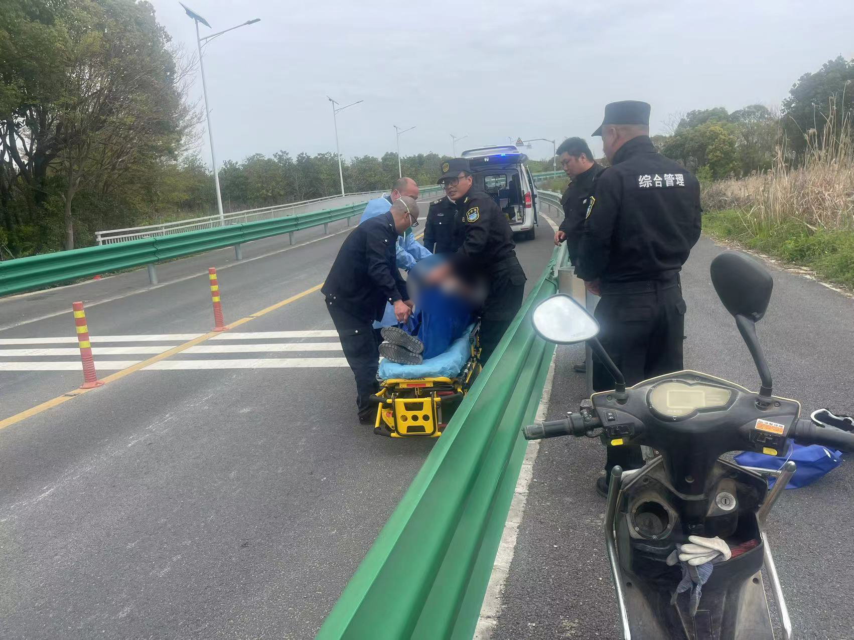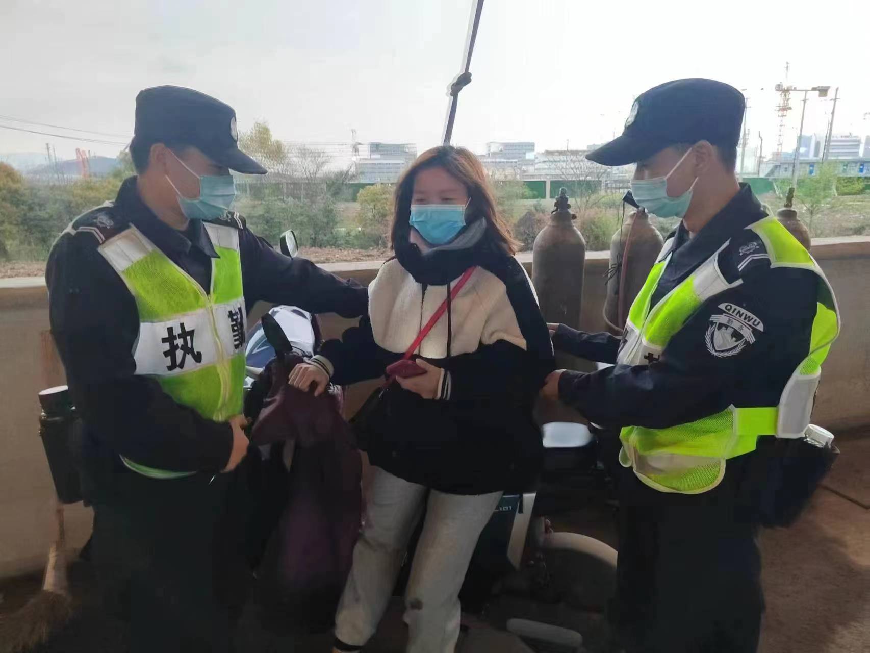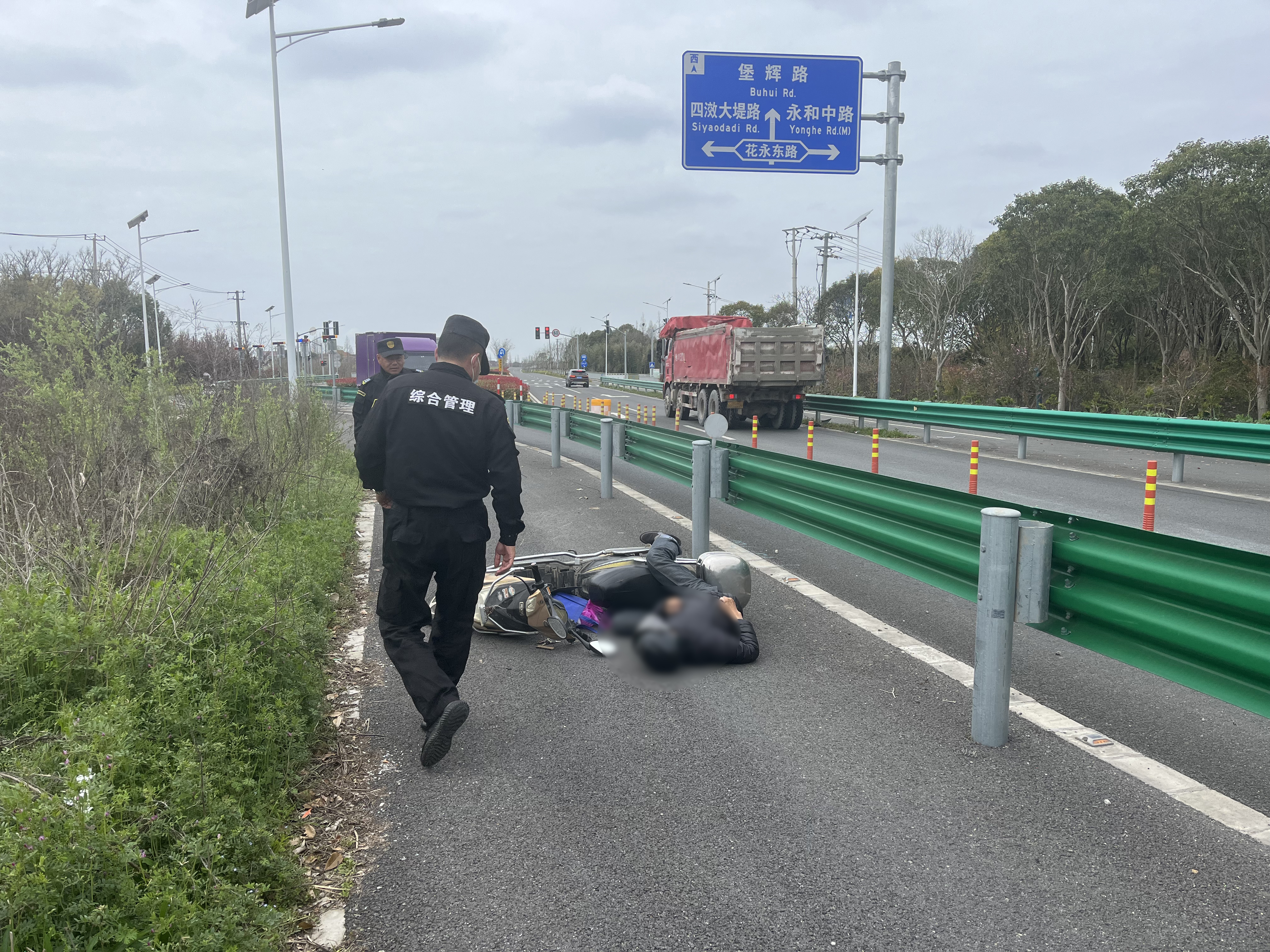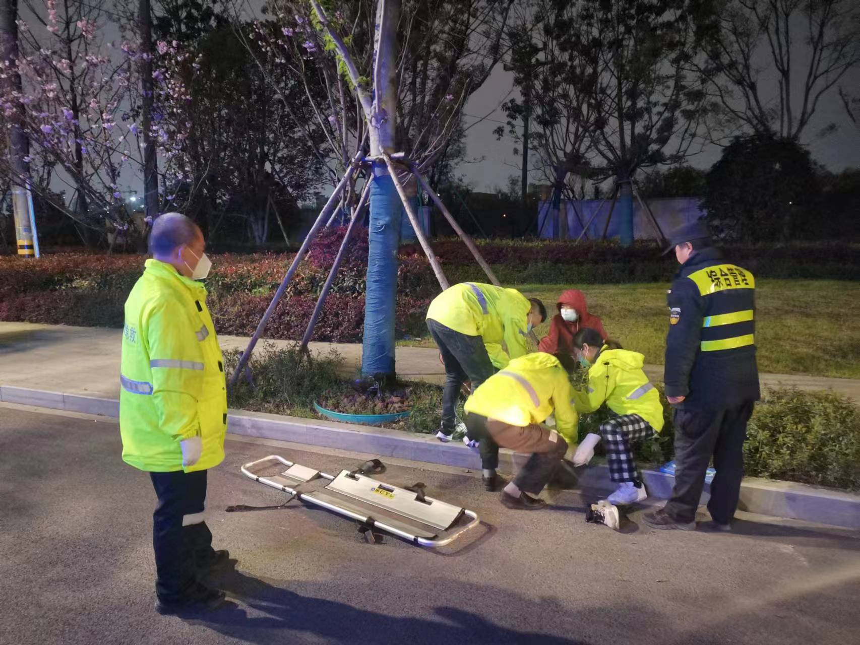 当日17:50,公司员工安毕富、郑统和王明顺在良渚街道疏港大道路段巡逻时,发现一名骑电动车的女子摔倒路边,便急忙上前询问女子伤势情况。
