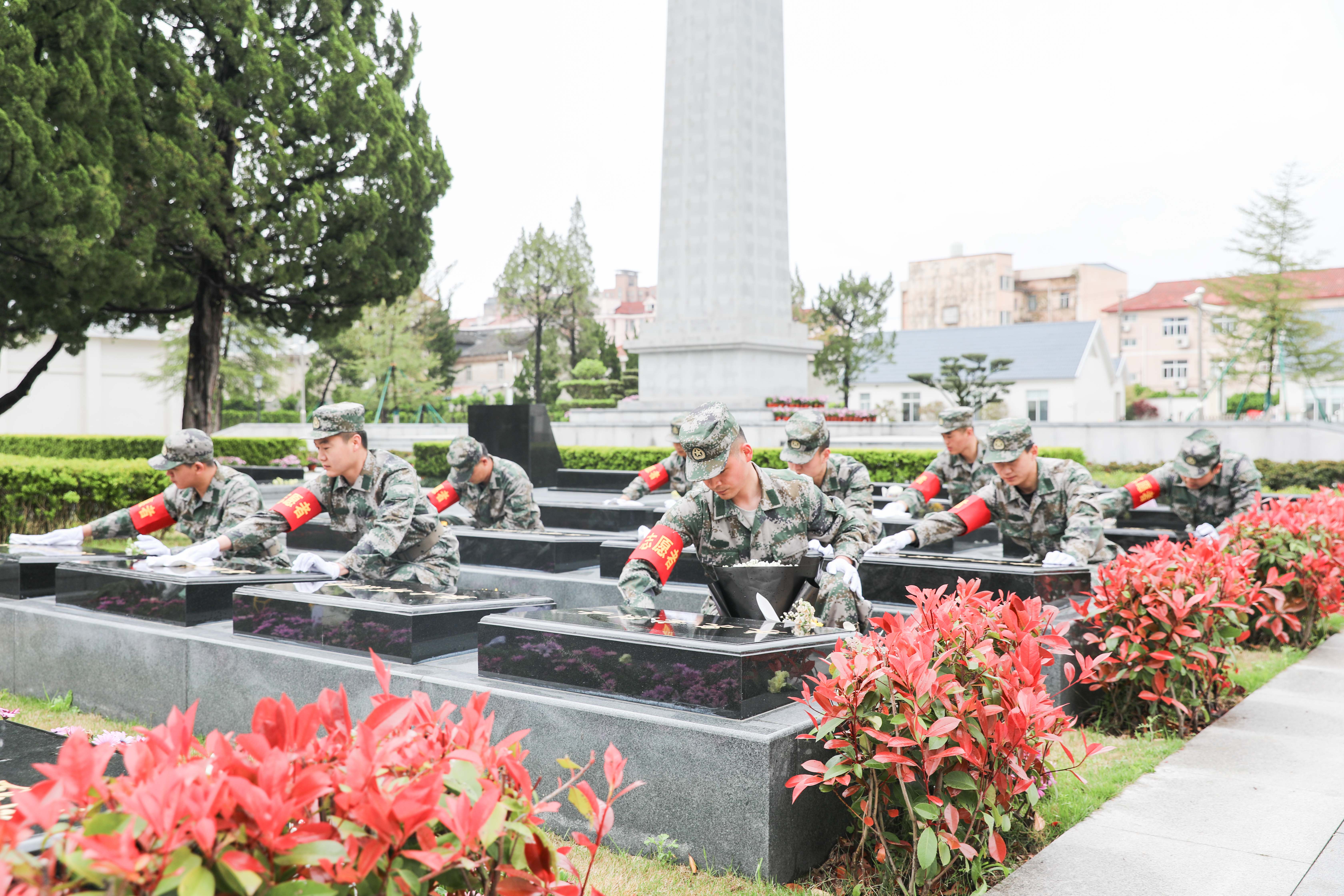 “天地英雄气,千秋尚凛然”。在革命烈士纪念碑前,全体人员整齐列队,神情肃然,怀着无比崇敬的心情向长眠于此的革命烈士们敬献花篮、默哀鞠躬。随后,志愿服务队队员走进烈士墓区,精心擦拭烈士名墙、墓碑、基座,摆放鲜花,缅怀先烈,寄托哀思。
