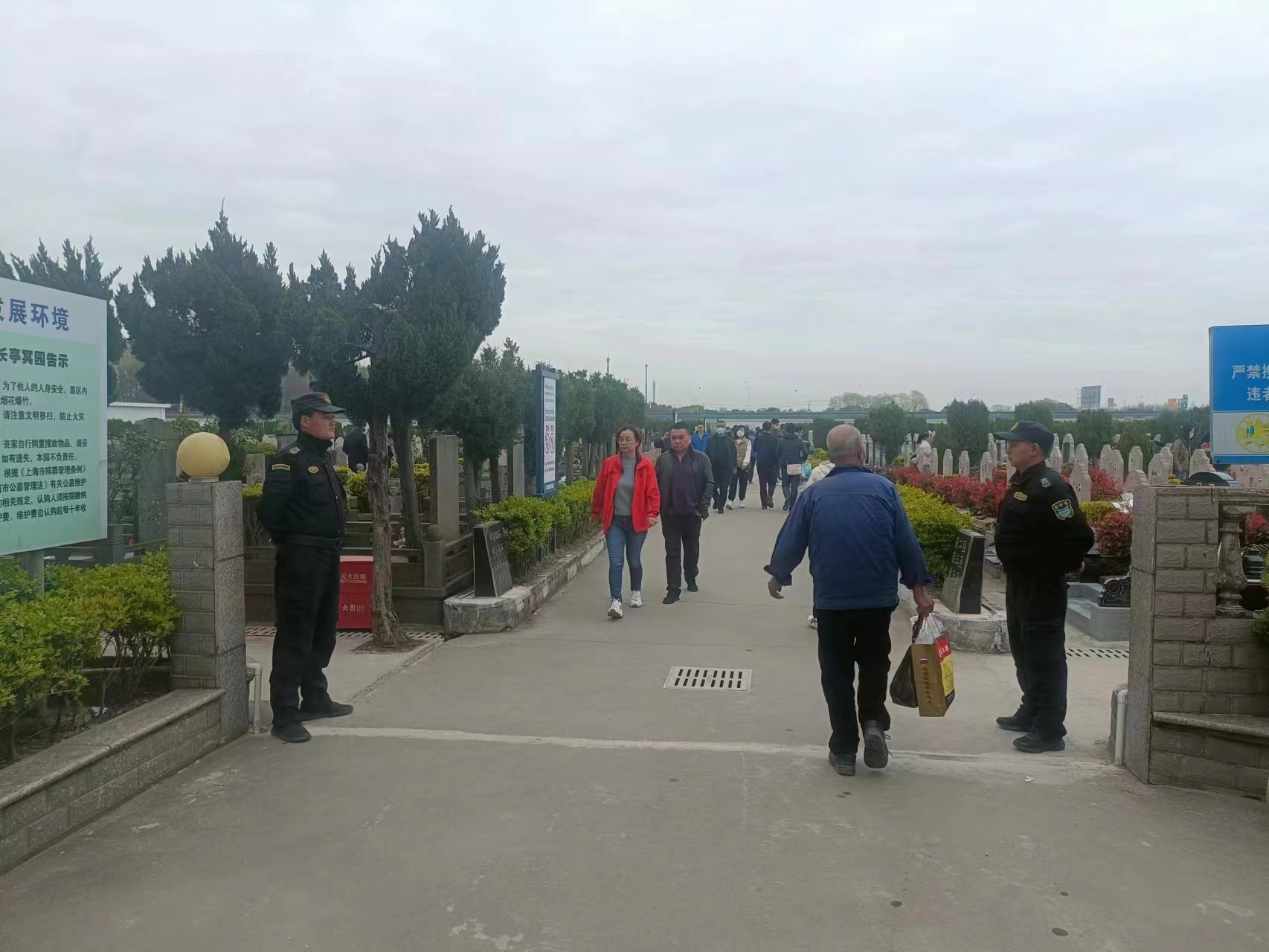 3月25日至4月5日为祭扫高峰期,宗保公司根据有关单位的部署和要求,全力以赴协助公墓陵园管理方做好清明祭扫秩序维护保障工作。 公司员工服从公司调度安排,提前进入指定公墓陵园,坚守岗位,神情肃然,指挥车辆有序通行,劝导市民文明祭扫,不间断巡查重点区域,及时排除安全隐患,严防祭扫引发火灾,确保祭扫安全文明有序。