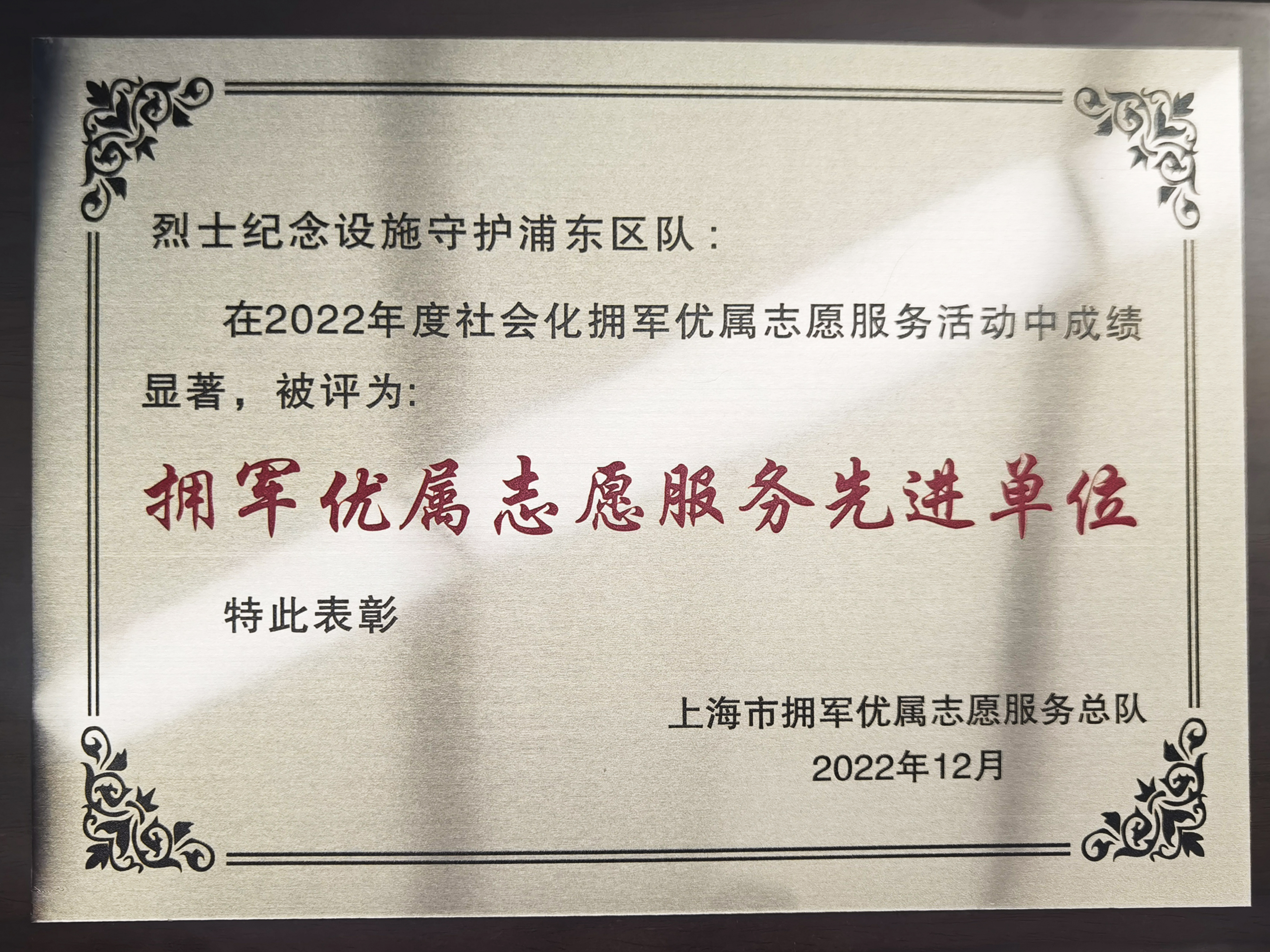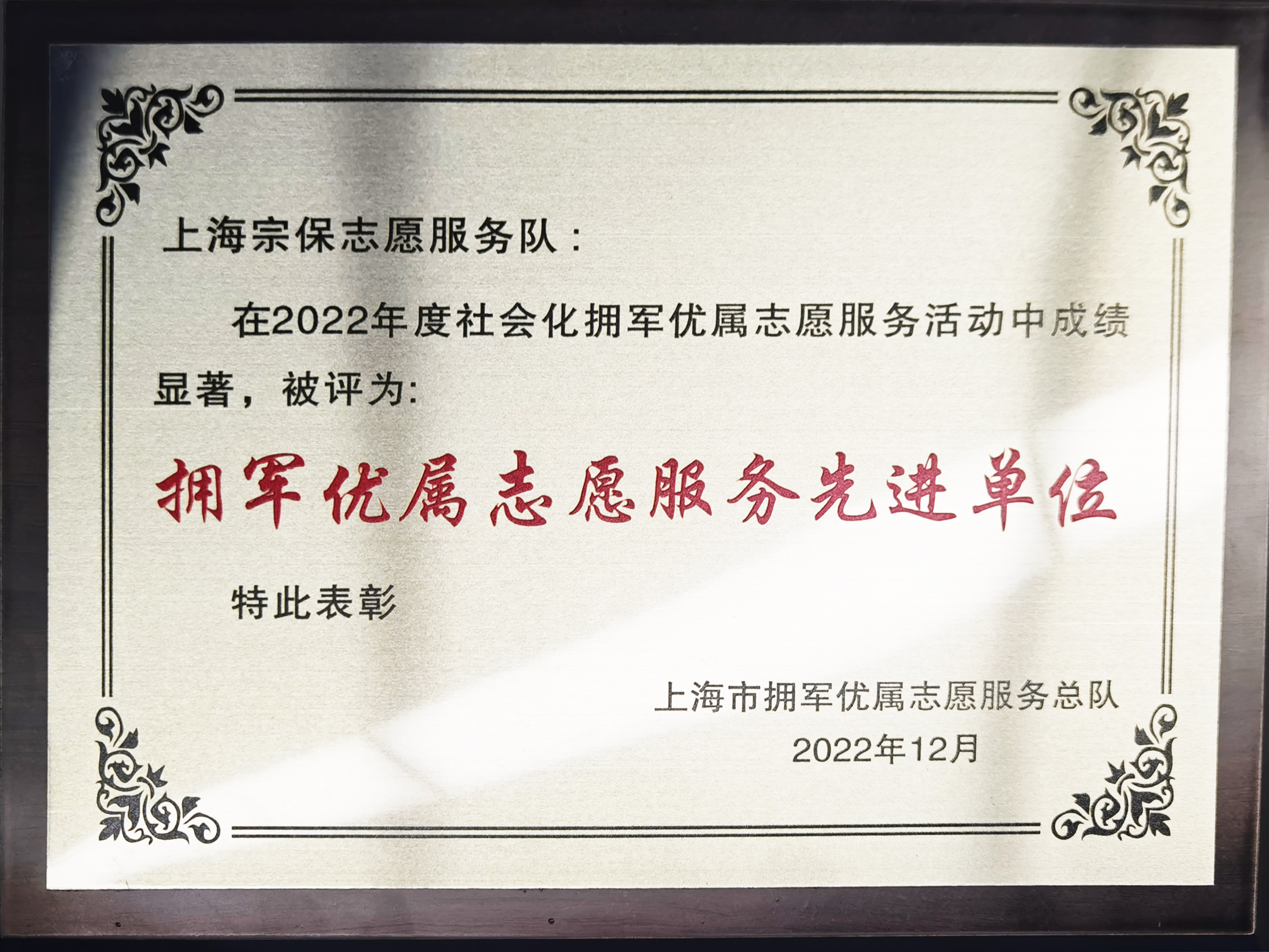 宗保公司甘于奉献、勇于担当,立足公司发展实际,主动履行社会责任。近年来,经上级主管部门批准,公司先后成立了三支以“双拥”为主题的志愿服务队:上海市拥军优属志愿服务总队国旗仪仗志愿服务队、上海市浦东新区退役军人志愿者宗保保安服务队、上海烈士纪念设施守护崇敬志愿服务队。