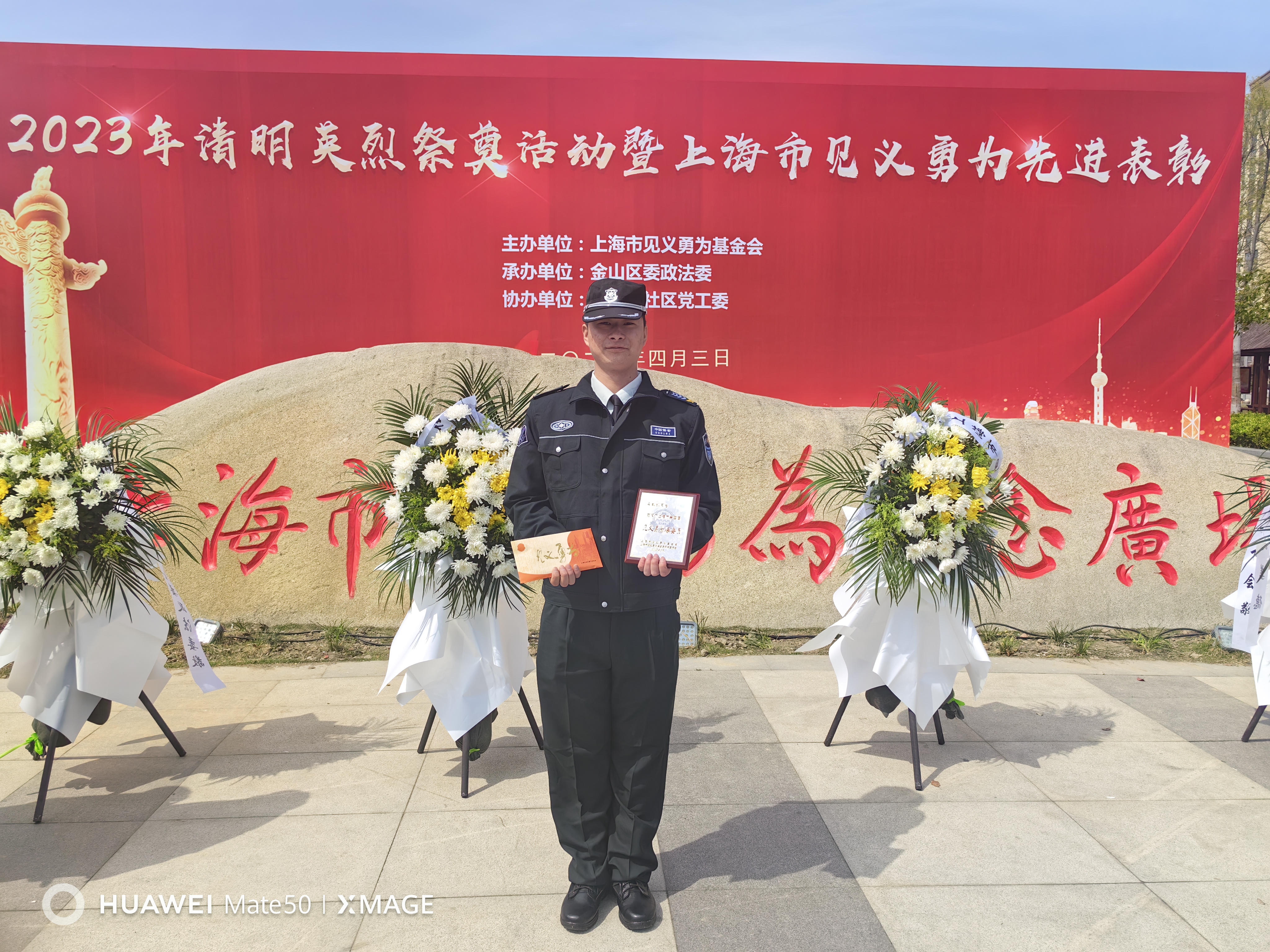 4月3日上午,上海市见义勇为基金会在金山区上海市见义勇为纪念广场举行了2023年清明英烈祭奠活动暨第四届上海市见义勇为先进表彰活动。