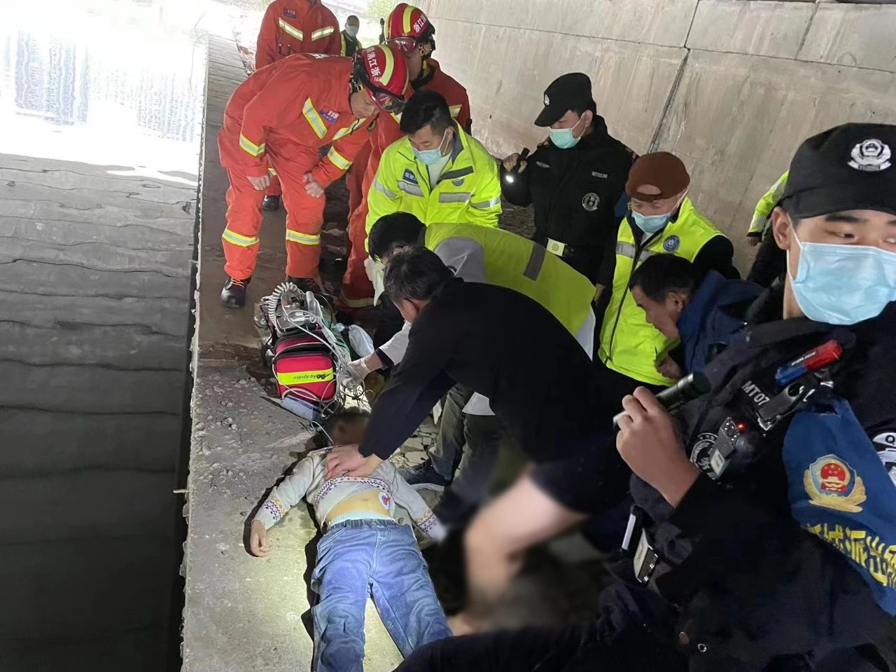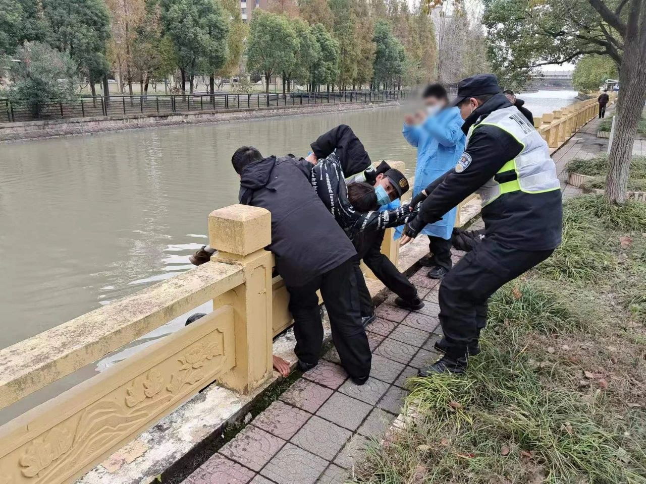 2023年1月23日10:40,公司员工马凯凯在杭州余杭区良渚新城派出所辖区巡逻时接到指令,称良渚实验学校旁庄墩路桥下有人落水,便立即赶回派出所跟随辅警李枭琦和周东明前往事发现场进行救援。