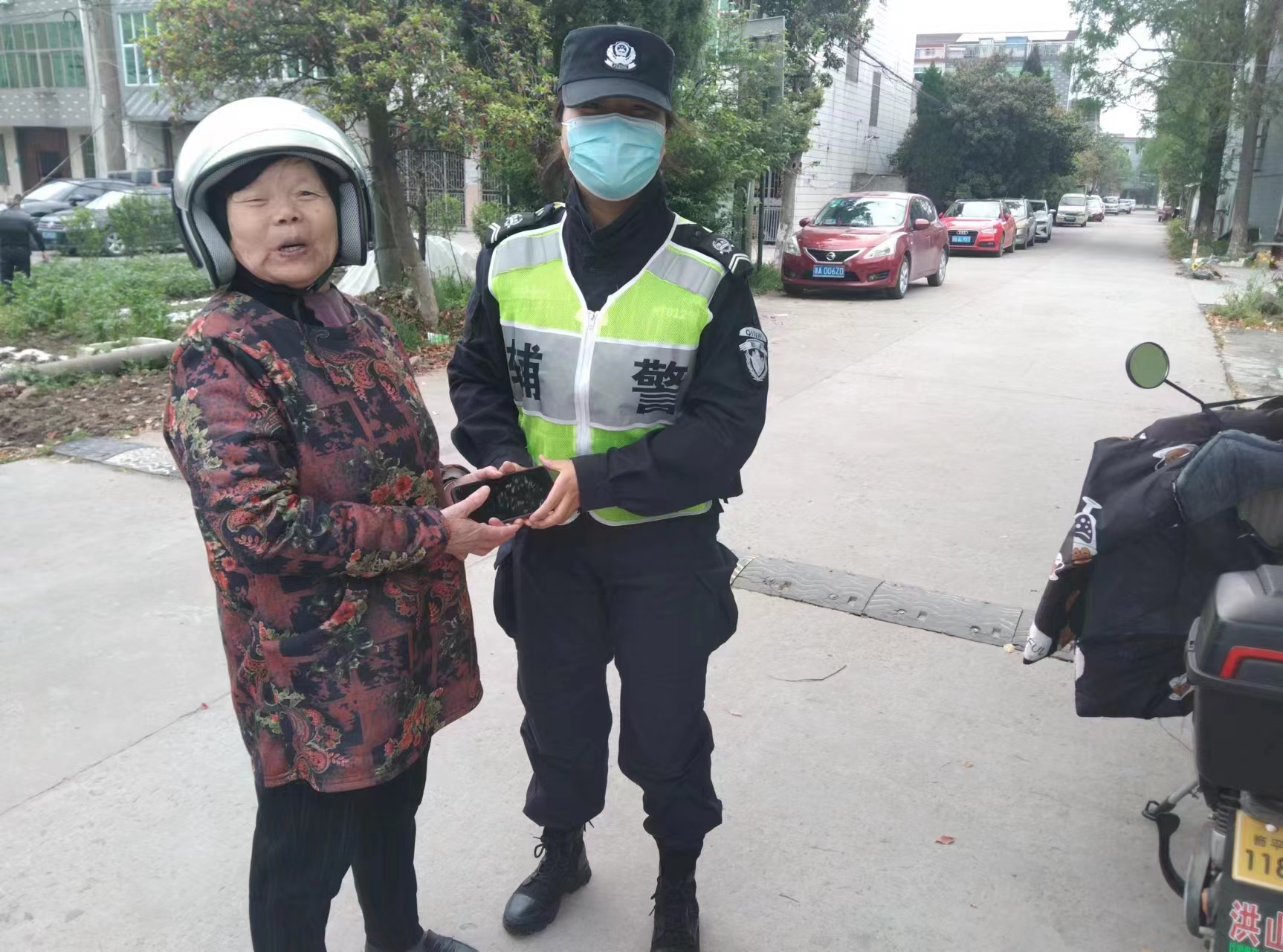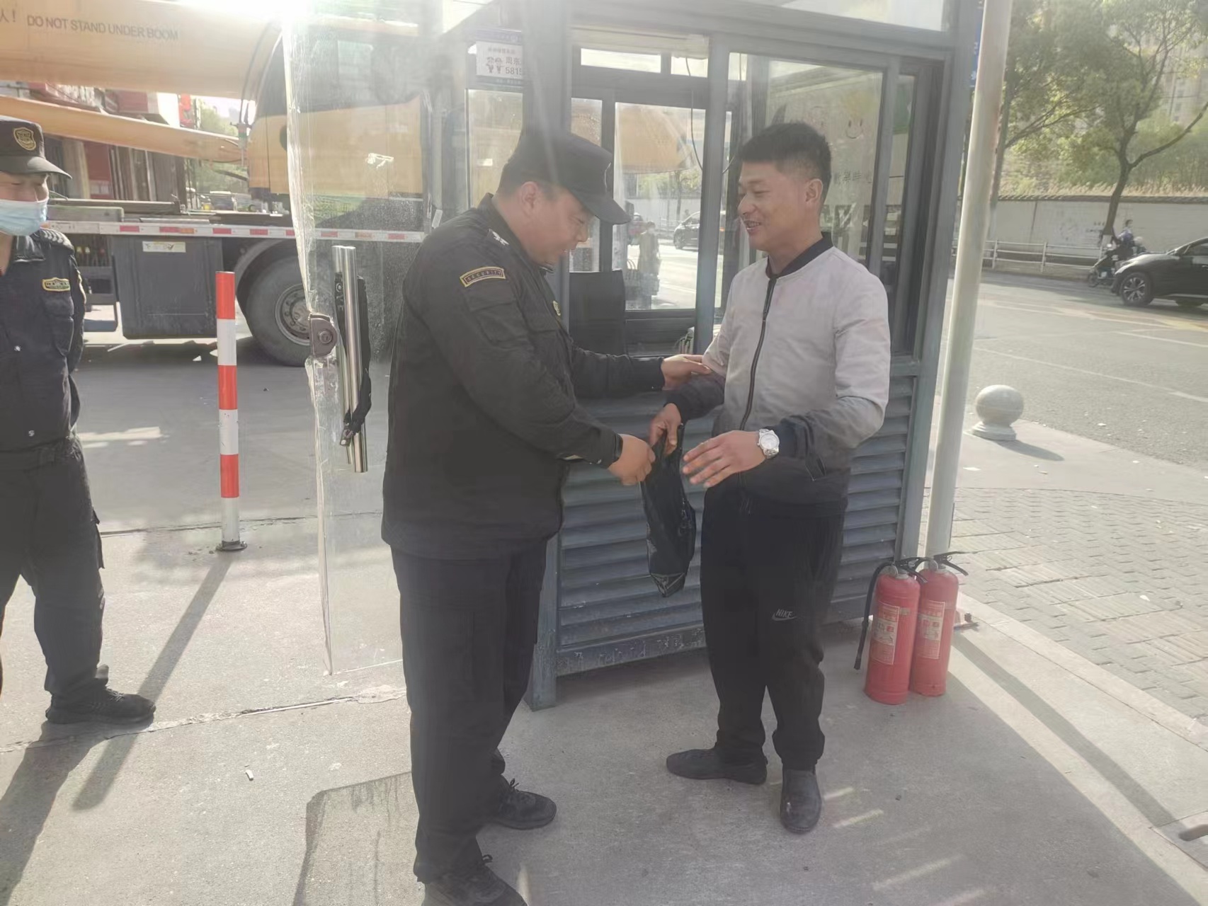 很快,派出所民警赶到现场。程意森将捡到的行驶证交给民警,随后回到工作岗位继续值勤。