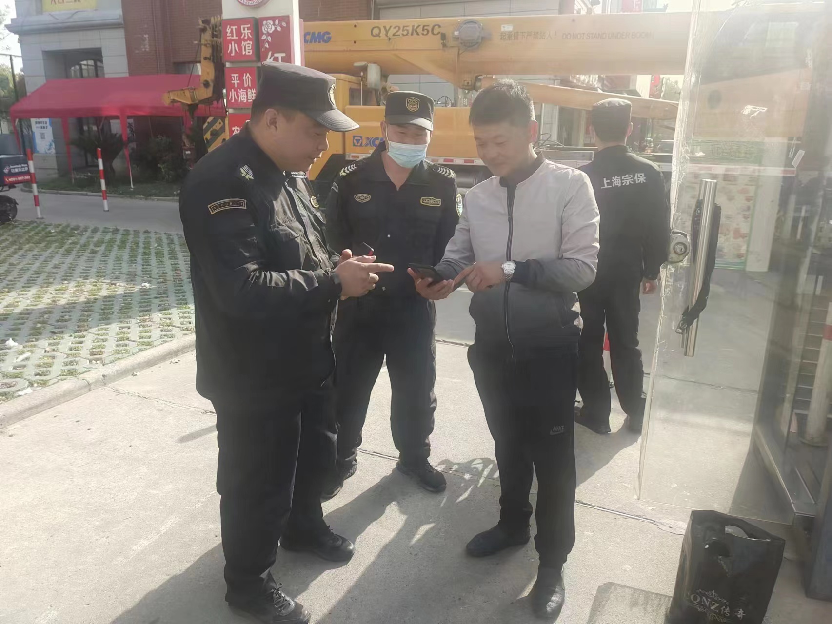 当日8:22,公司员工吴金龙在莘庄北广场值勤时,捡到一部OPPO R9手机和一部小米手机,便立即将情况报告了项目负责人,并按指示在原地边值勤边留意寻找物品的人。