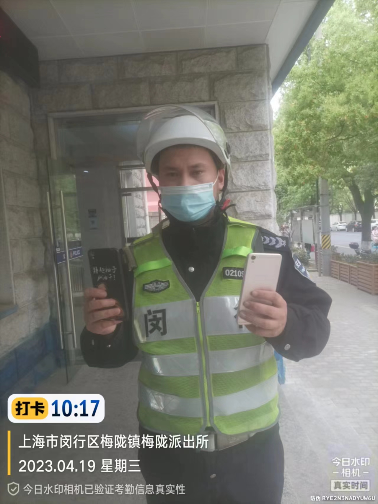 4月19日,宗保公司驻闵行区交通委项目员工捡到手机上交民警。