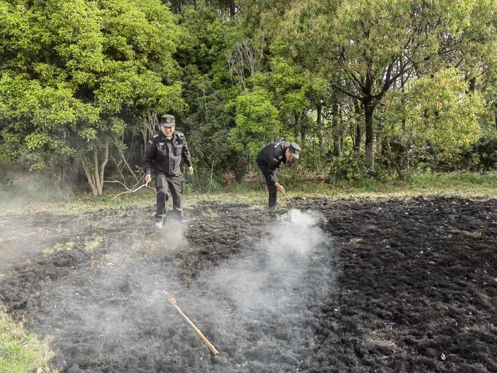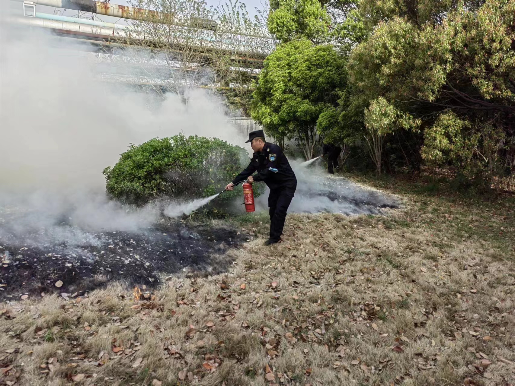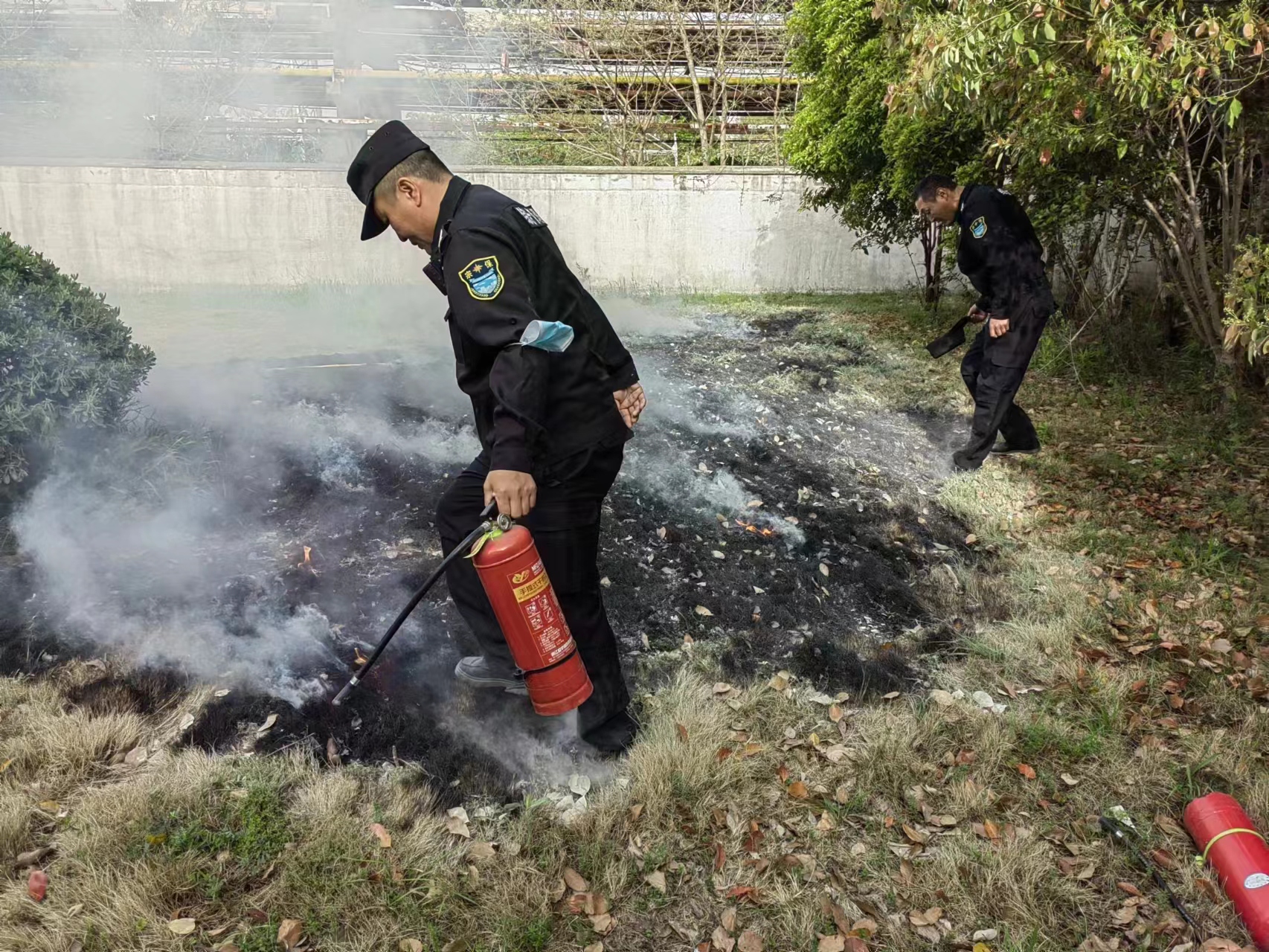 3人急忙奔到门岗室拿起灭火器赶往现场,此时草坪正在燃烧,且火借风势逐渐扩大。3人迅速拉开灭火器,赶紧对准着火位置灭火,由于扑灭及时,避免了火情大范围蔓延,最大限度地降低了植被损失。