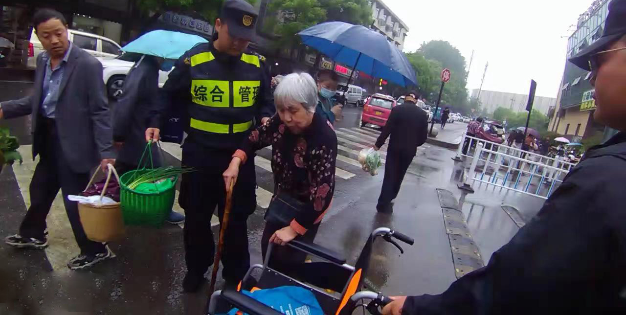 4月19日,浙江民泰公司驻杭州市余杭区闲林市容项目员工帮助老人安全回家。