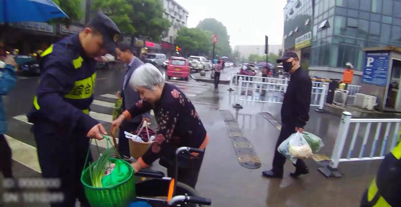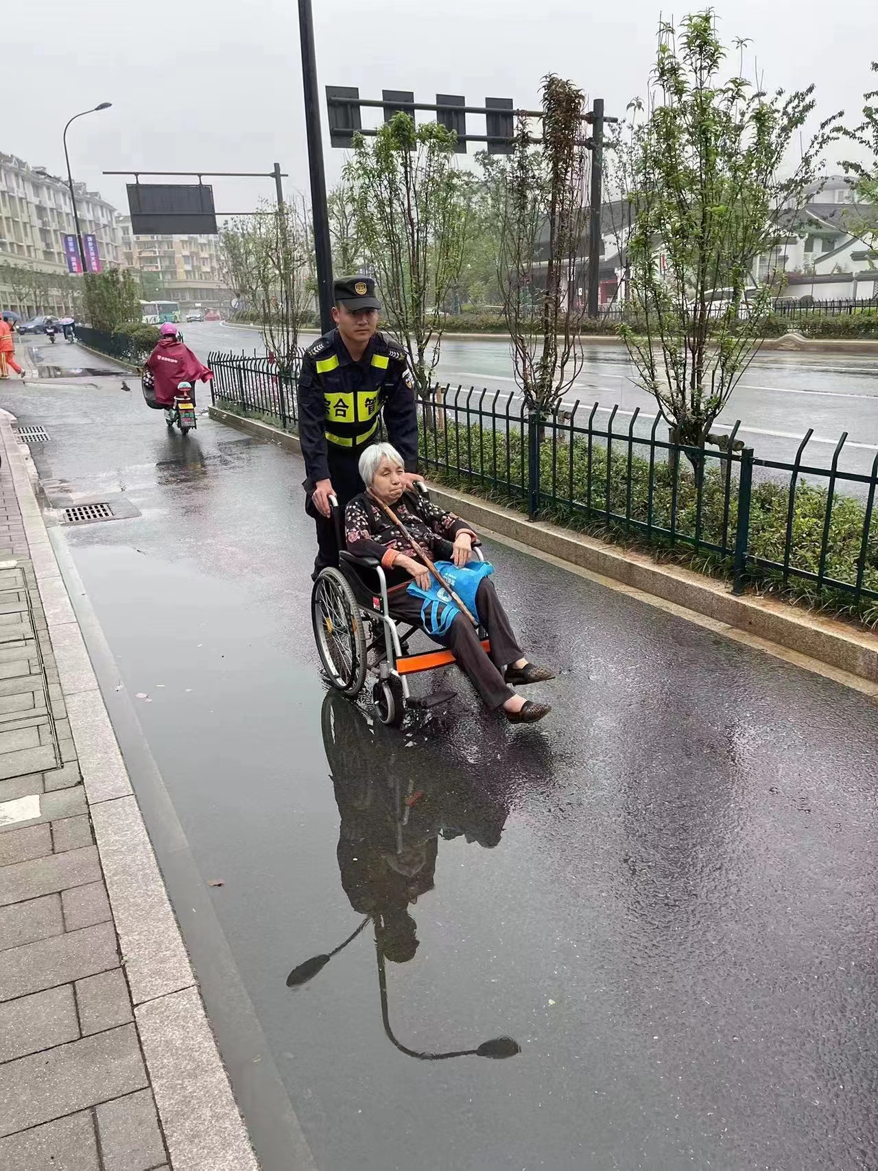 当日7:50,公司员工李学江、姚迎寒和周银浩在闲林街道文卫路农贸市场值勤时,遇到一位老人求助,称自己一早来菜场买菜,坐着轮椅走的时间太长了,左腿还患有严重的风湿病,现在走不动回不了家了。