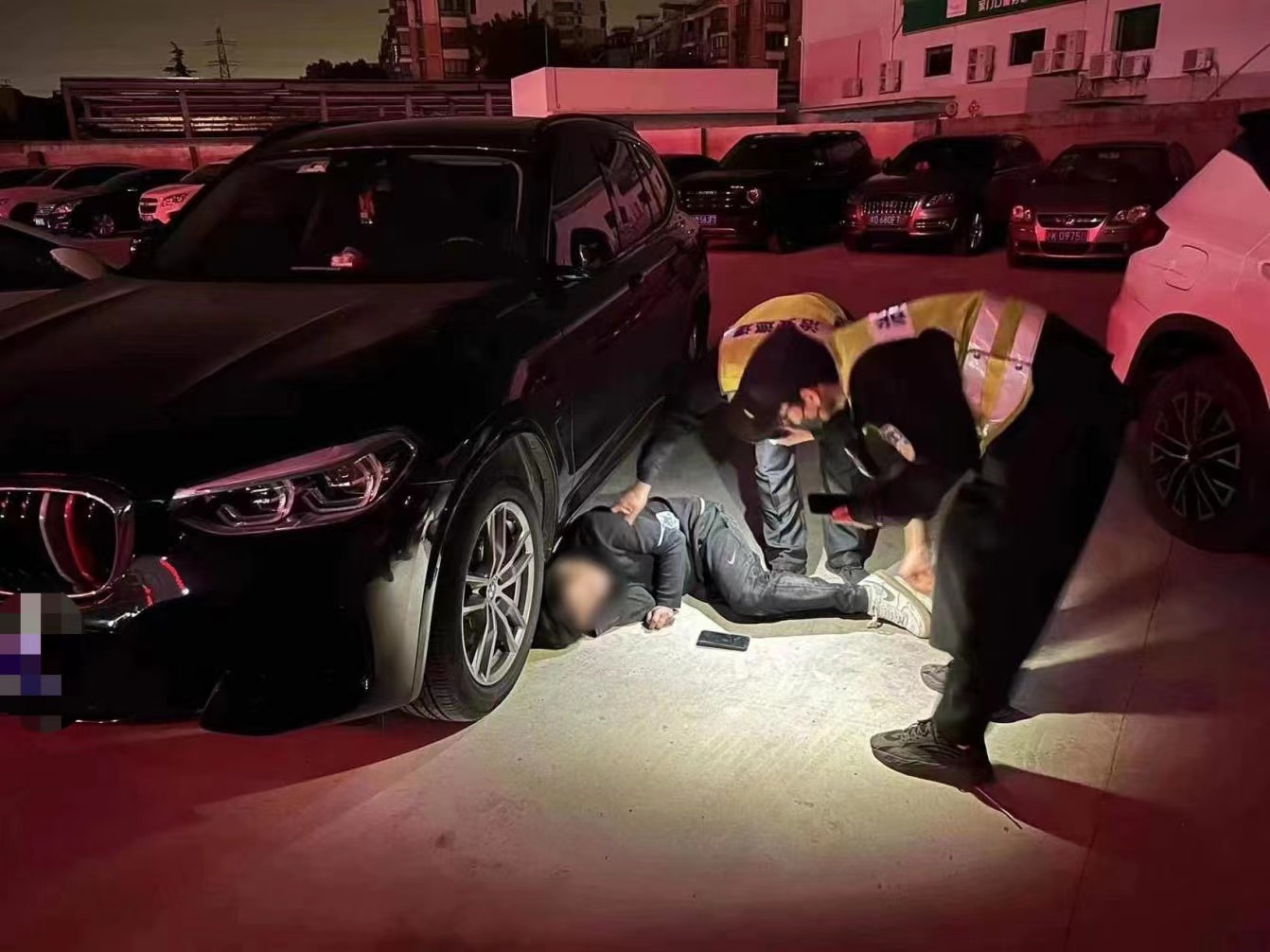 当天凌晨1:00,公司员工夏单松和秦天龙巡逻至川周公路周东路停车场时,发现一男子躺在地上,满身酒气疑似醉酒,且一半身体在轿车车身下,再加上停车场光线较暗,随时都可能会发生被碾压的危险。两人赶紧蹲下察看,夏单松轻拍男子试图叫醒他,但可能由于饮酒过多醉酒昏睡,无法问清其姓名和家庭住址。